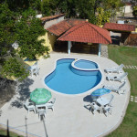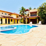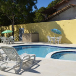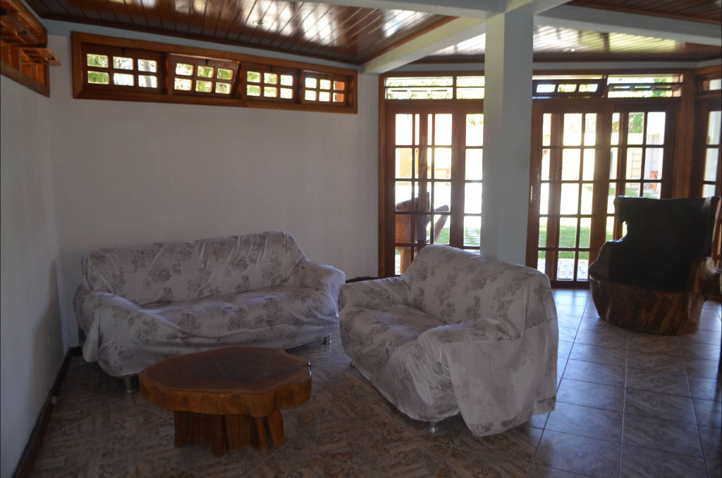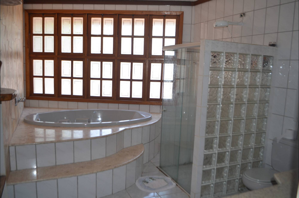 Casa com 6 quartos, sendo 5 suítes, banheira, sala TV, sala de jantar, cozinha equipada, área de lazer com piscina e churrasqueira, varanda, jardim, estacionamento interno para 6 carros, internet Wi-Fi.