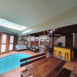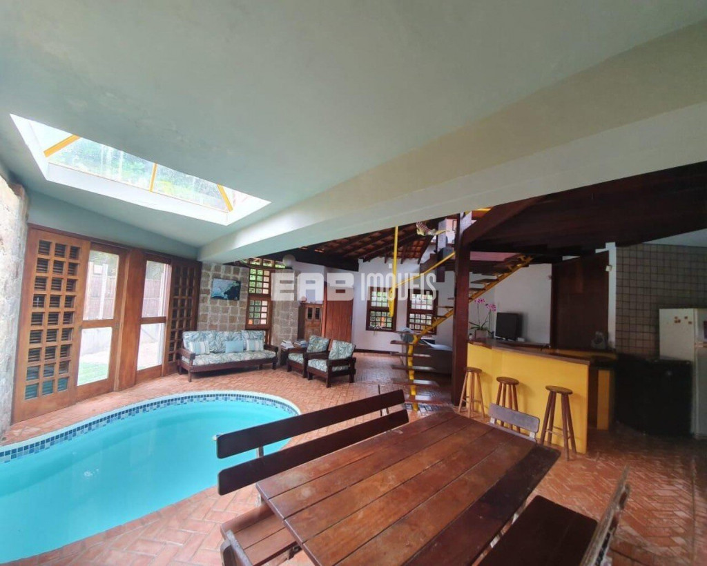 Projeto arquitetônico singular, com piscina que adentra a sala de estar. Muito próxima à praia, esta casa recebe os hóspedes com muita comodidade e conforto, nas 4 suítes com ar condicionado. Internet fibra ótica de 240 Gb, TV a cabo e Netflix.