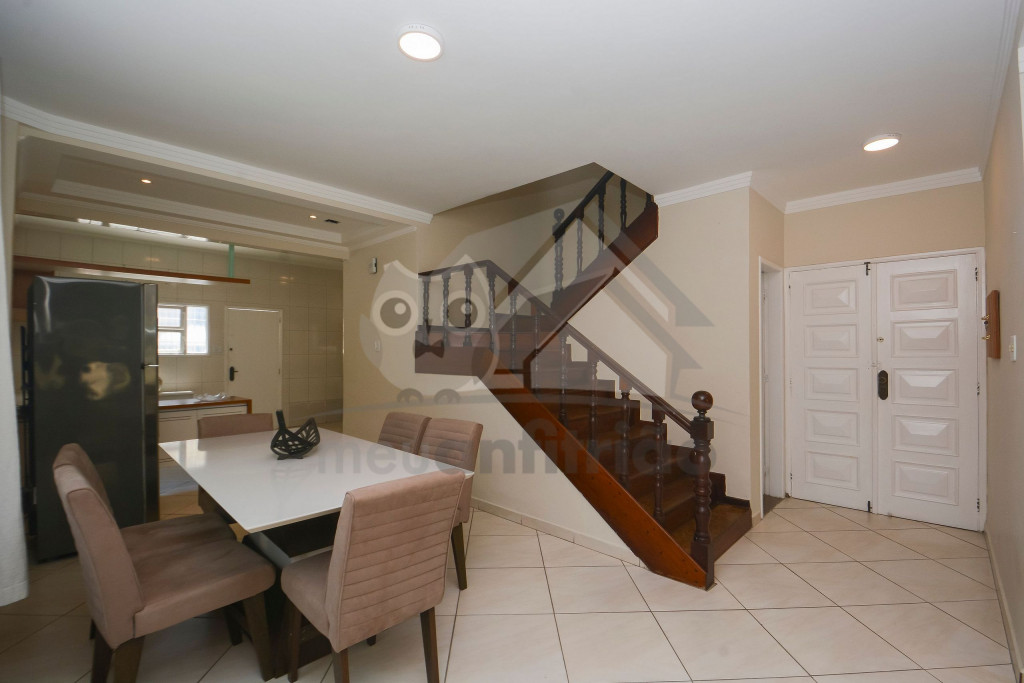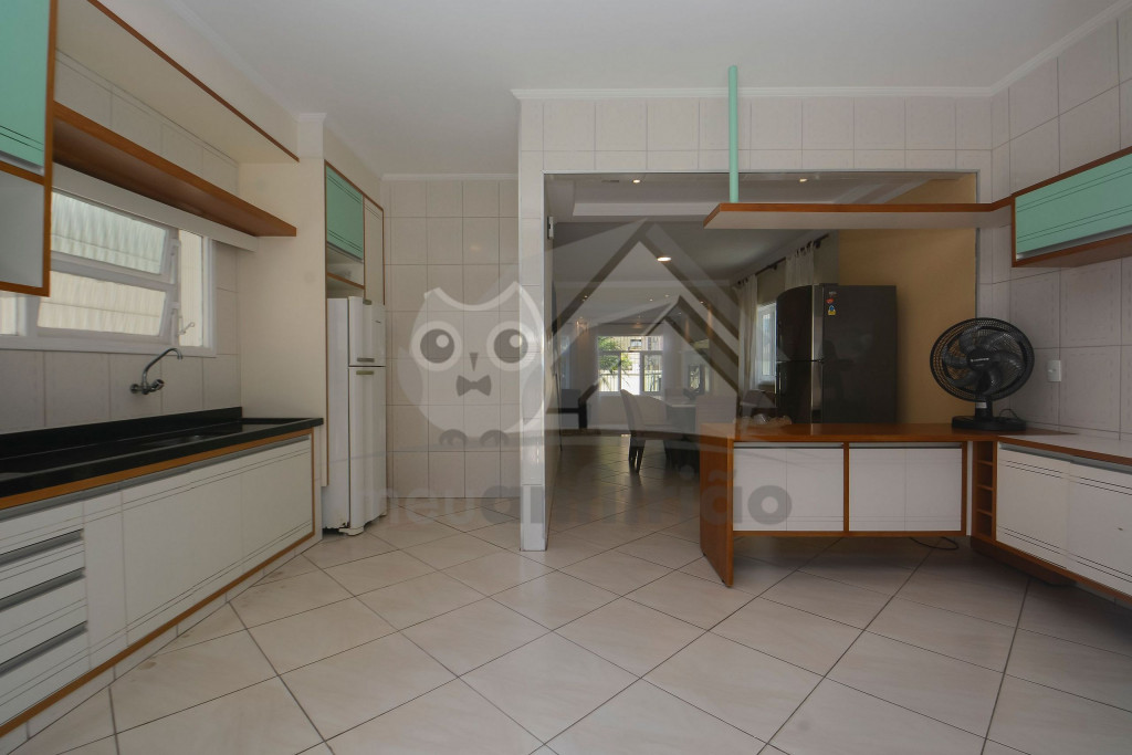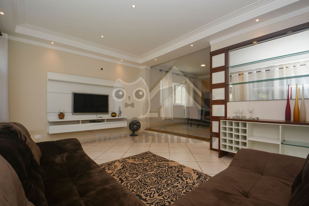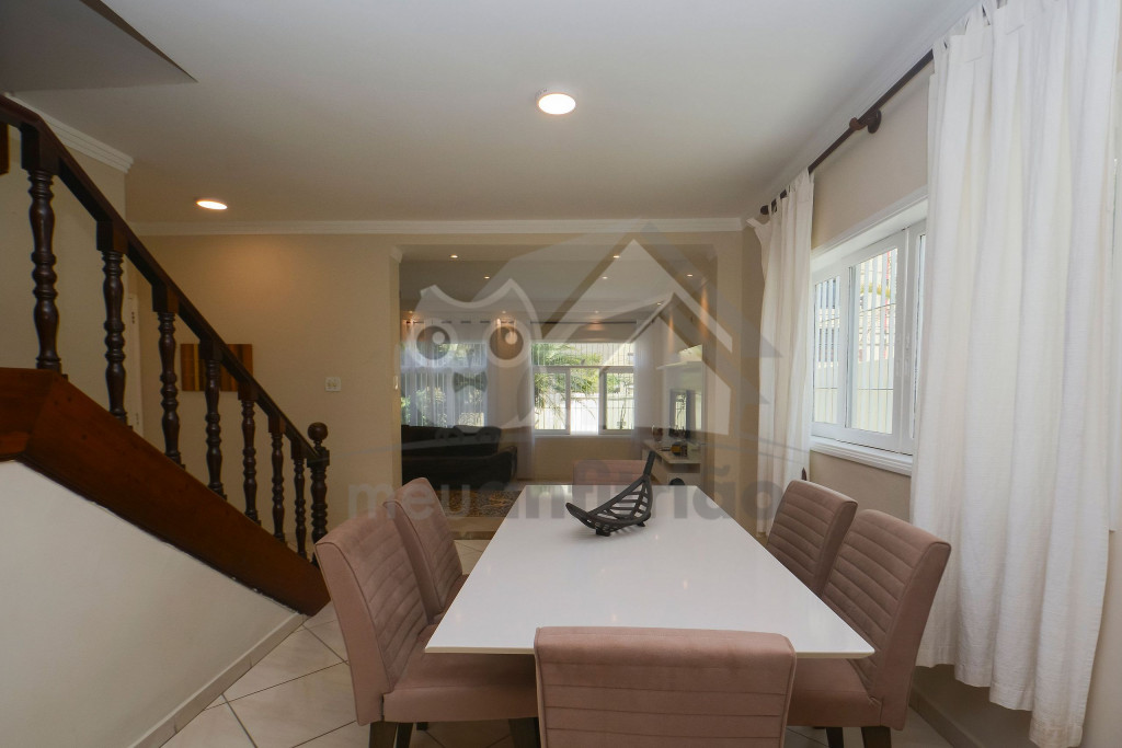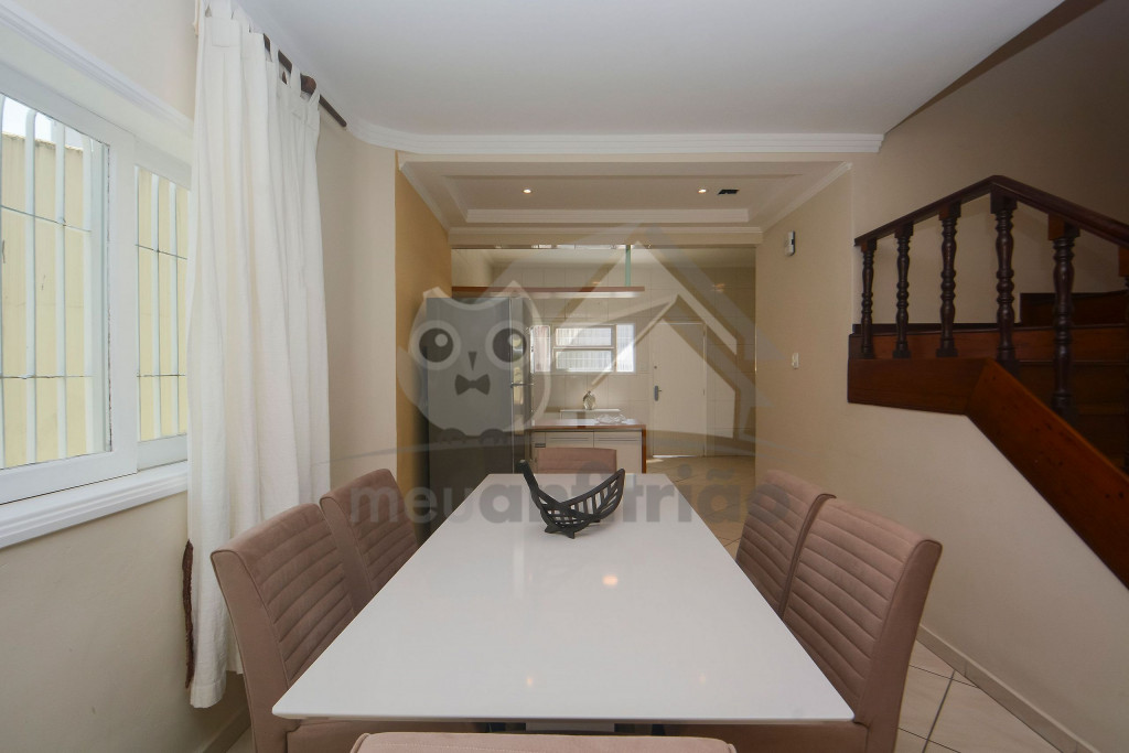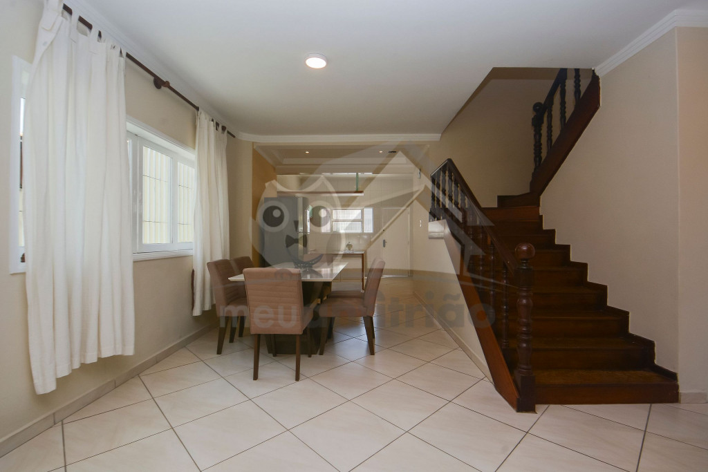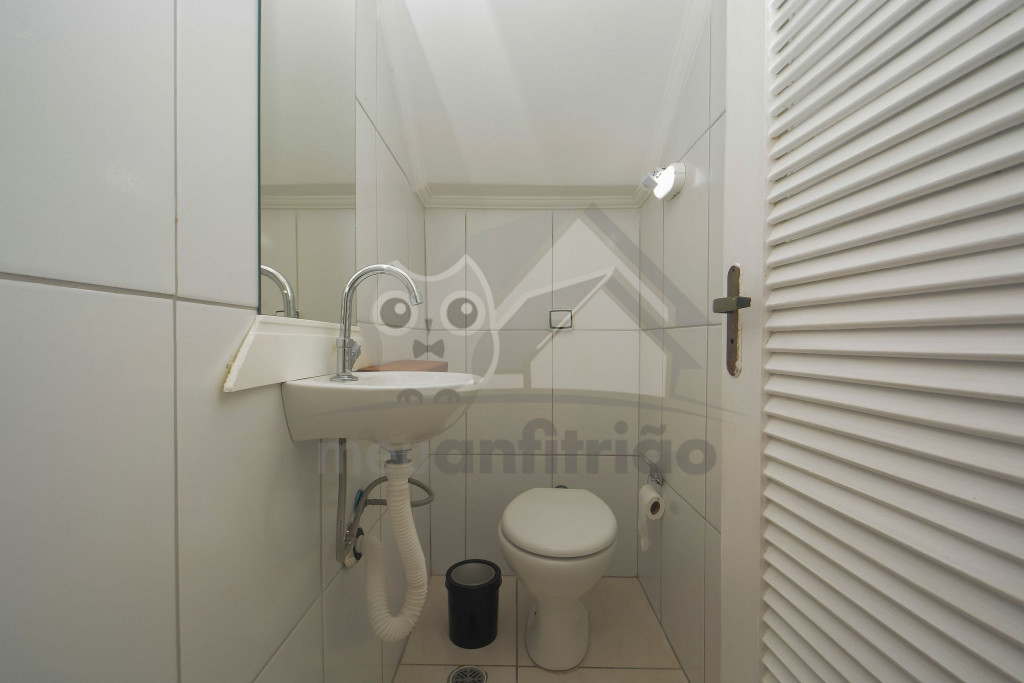 Logo ao entrar na casa, o hóspede encontrará uma sala com TV e, integrada a ela, temos um lavabo, uma sala de jantar e uma cozinha com utensílios necessários para a estadia.