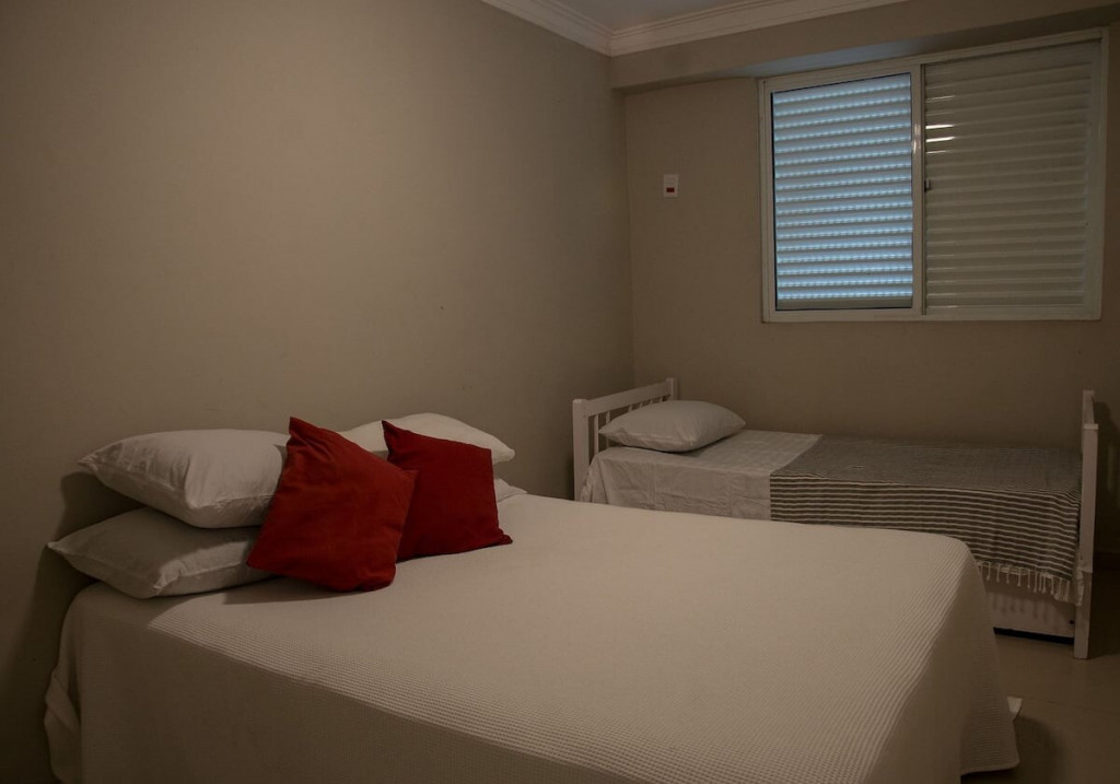 – 3 quartos e 1 suíte, sendo todas uma cama de casal e e uma bi cama de solteiro, comportando assim, 4 pessoas por quarto.