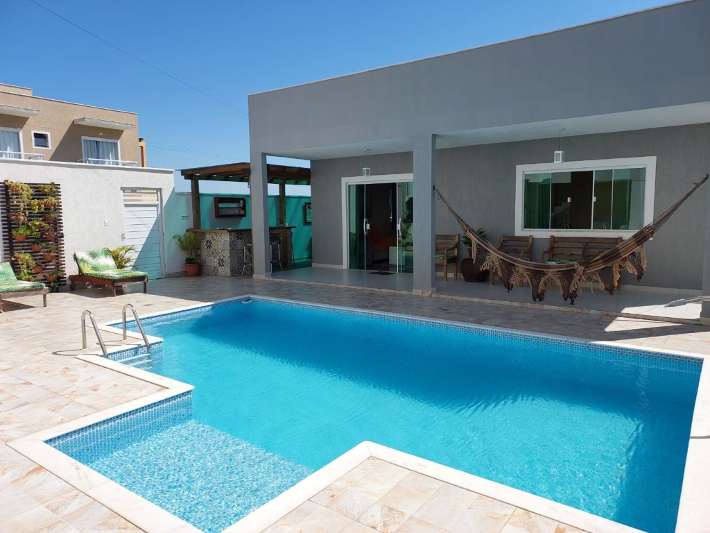 Linda casa localizada em ponto estratégico, bairro novo e super tranquilo, perto das belas praias de Cabo Frio , à 10 minutos de Búzios. Totalmente mobiliada e equipada com todos os itens necessários para uso dos hóspedes. Temos 3 quartos, todos com ar condicionado, sendo 1deles suíte com frigobar. O imóvel dispõe, ainda, de sala, cozinha, churrasqueira do lado de fora, área de barzinho perto da piscina com pergolado. Venha desfrutar desse agradável ambiente e tenha dias incríveis!