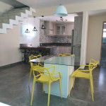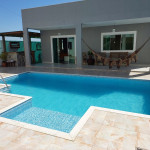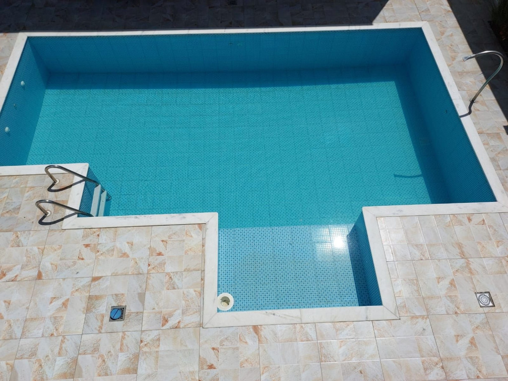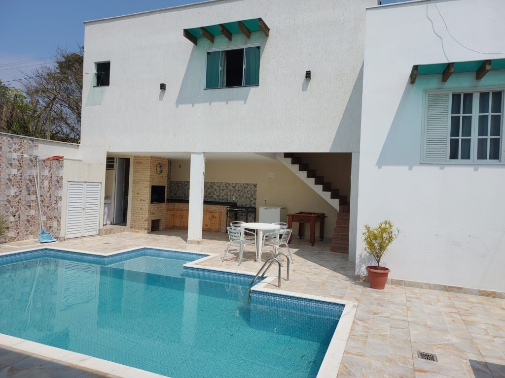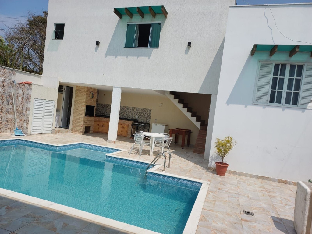 Dentro da casa temos: 1 quarto e a sala. Fora da casa: 2 quartos com frigobar, sendo 1 deles a suíte. Área externa com piscina e churrasqueira privativas do imóvel. Cozinha equipada com: geladeira, micro-ondas, fogão, espremedor de suco, sanduicheira, liquidificador, panelas, panela de pressão, tabuleiro, xícaras, pratos, talheres, fogão cooktop e forno embutido.