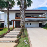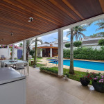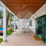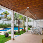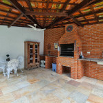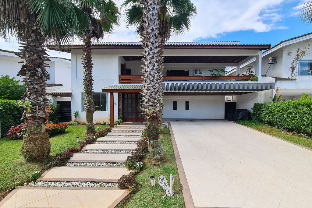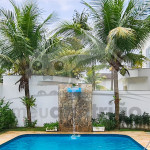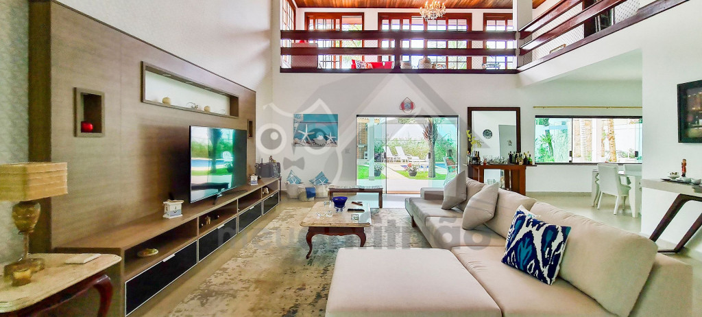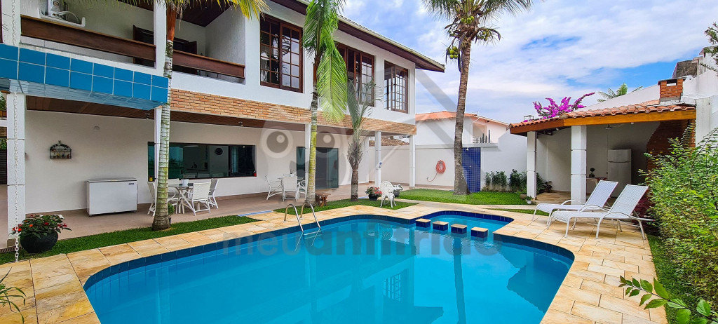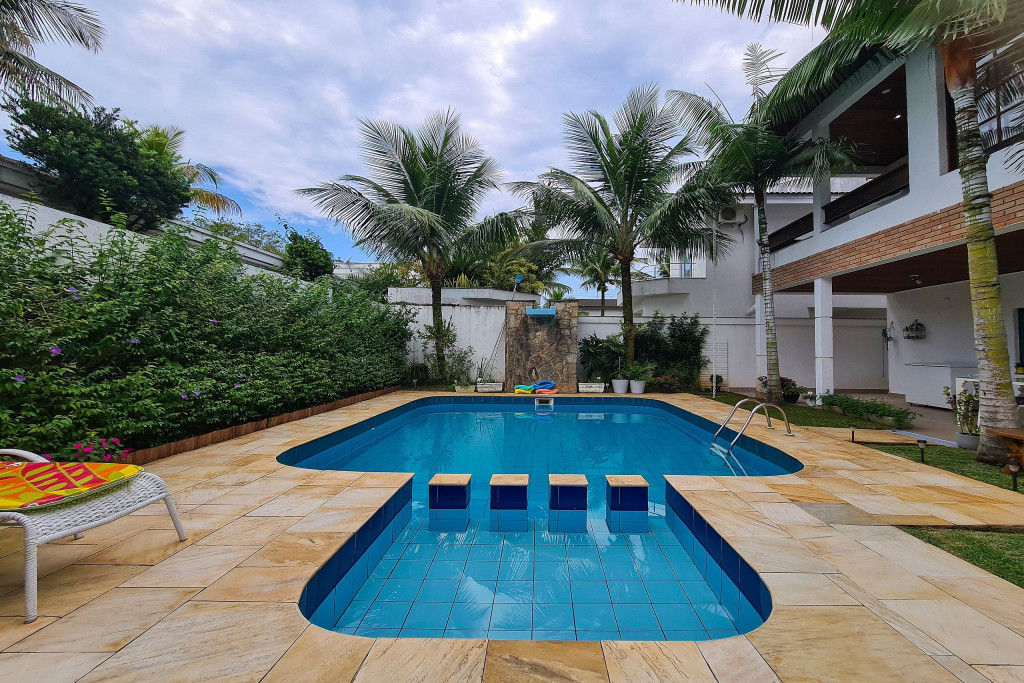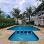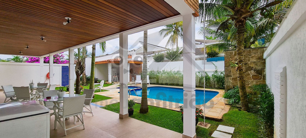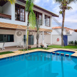 A área externa é um dos pontos altos da casa, com varanda aconchegante, piscina com cascata, ducha e churrasqueira.No local também há vagas para 4 carros.