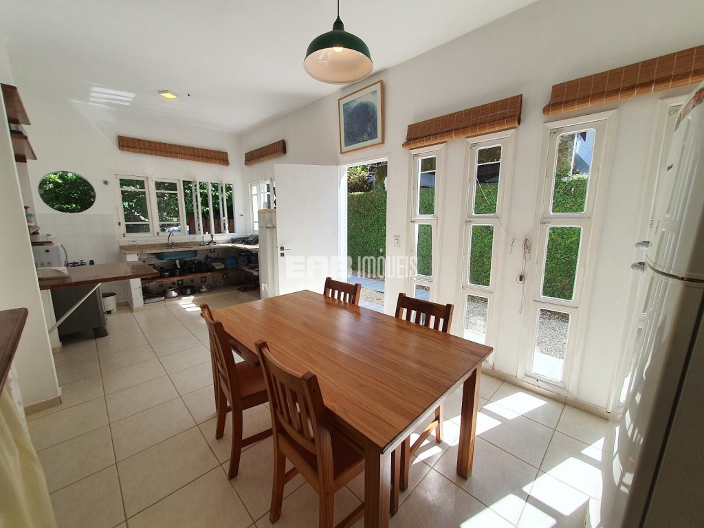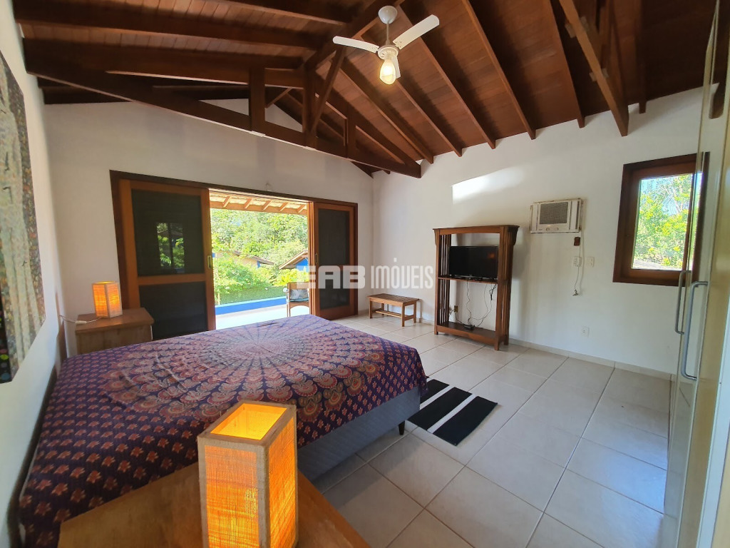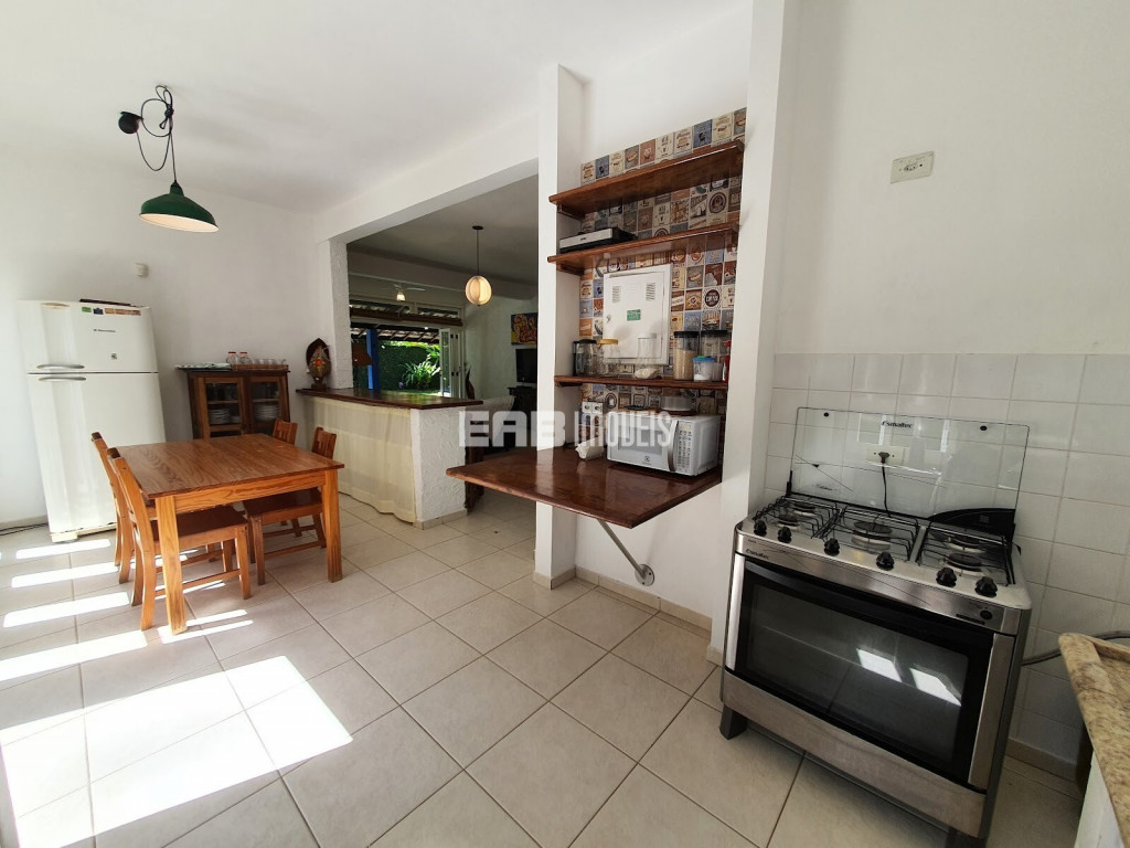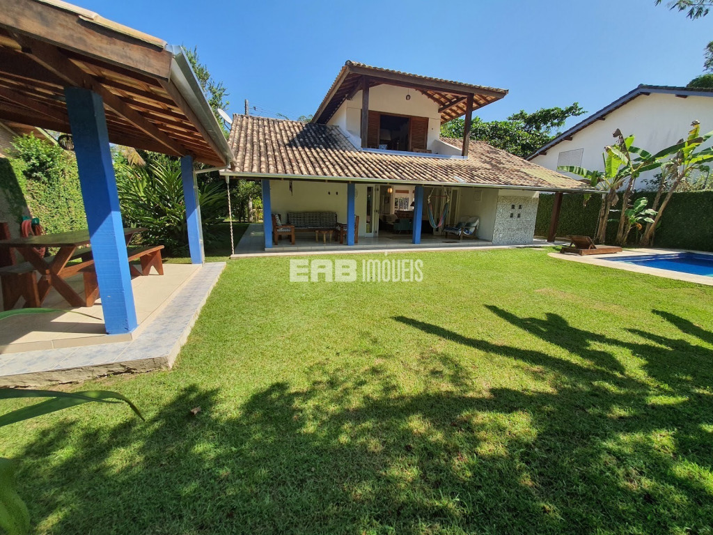 Agradável casa de praia, com cozinha integrada à sala, que se abre para a varanda voltada para um belo gramado com piscina e quiosque gourmet. São 3 dormitórios internos, sendo 1 suíte, todos com ar condicionado, para 9 pessoas ficaram bem instaladas, a apenas 180m da praia de Itamambuca. A casa ainda conta com uma suíte externa.