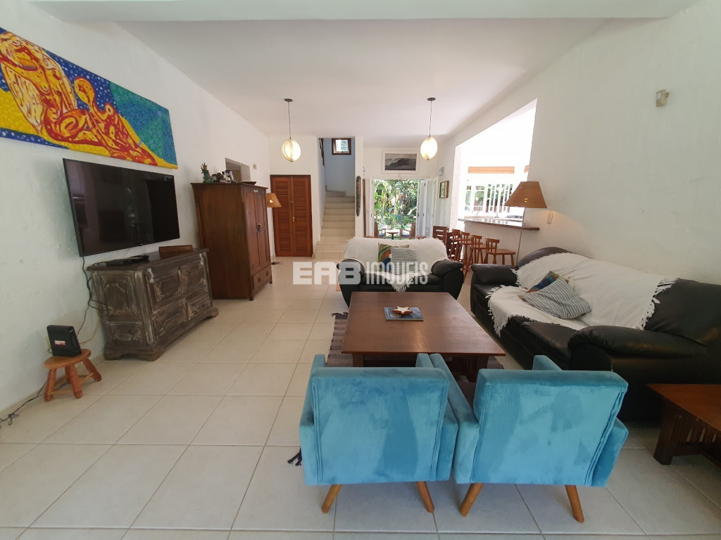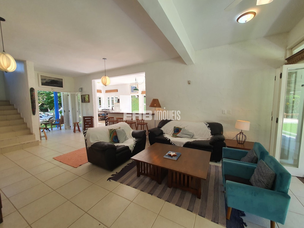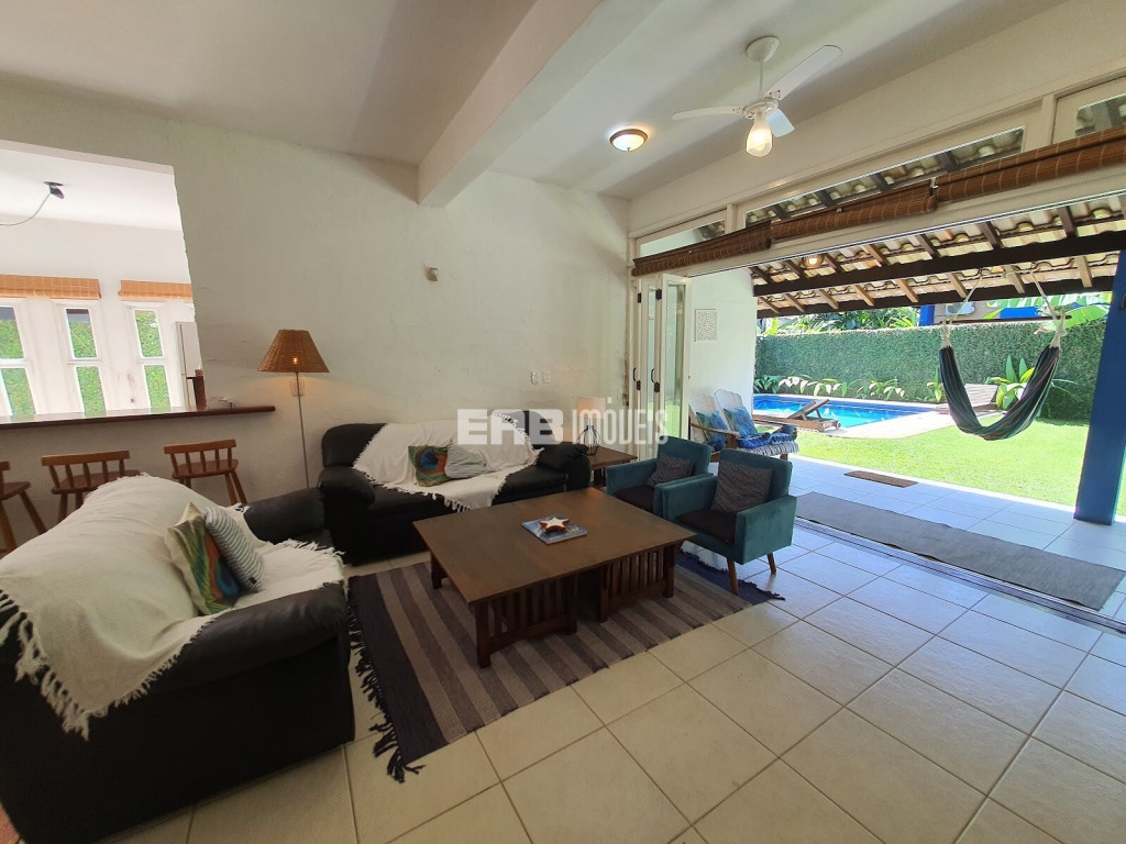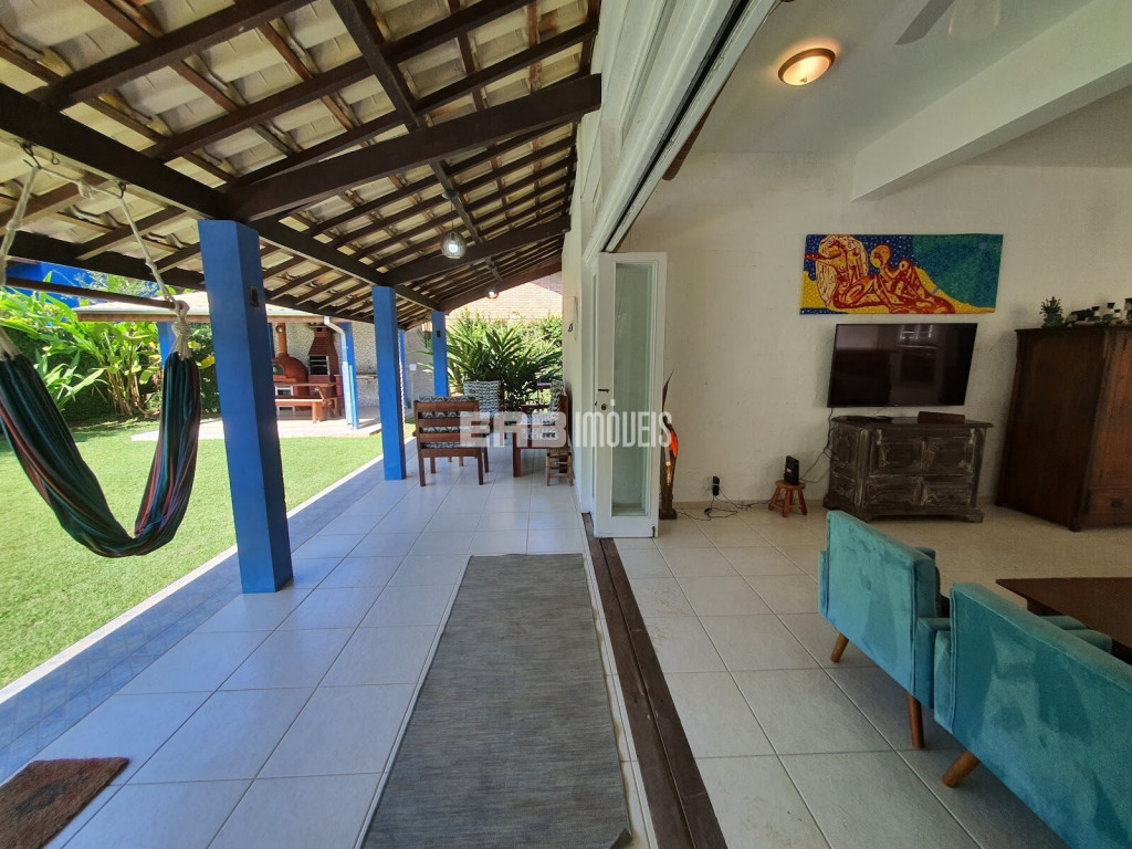 Agradável casa de praia, com cozinha integrada à sala, que se abre para a varanda voltada para um belo gramado com piscina e quiosque gourmet. São 3 dormitórios internos, sendo 1 suíte, todos com ar condicionado, para 9 pessoas ficaram bem instaladas, a apenas 180m da praia de Itamambuca. A casa ainda conta com uma suíte externa.