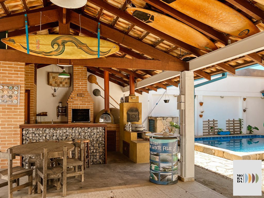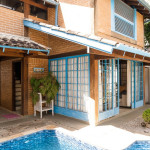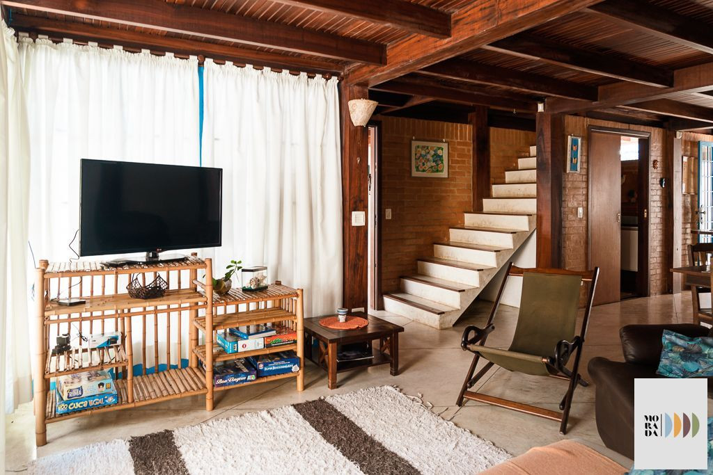 Importante!No quarto de casal e no quarto de solteiro, existe um banheiro que é compartilhado entre os dois quartos.A casa possui ar condicionado na suíte e no quarto de casal. Nos demais espaços da casa são disponibilizados ventiladores.