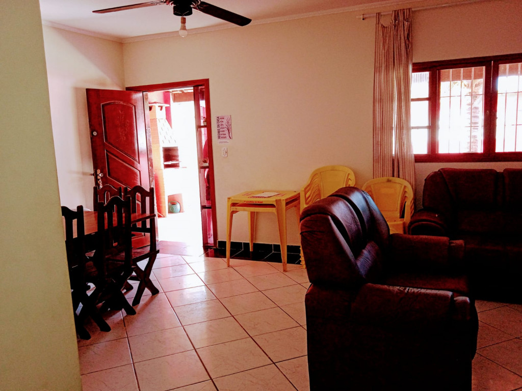Casa terrea, 4 dorm (1 suite), 2 banheiros sociais, sala de estar,.sala de jantar, copinha,.cozinha, churrasqueira, wi-fi,.garagem 4 veiculos (portao com acesso para van), 120mts da praia. Acomodamos 20 pessoas em camas.
