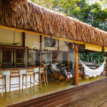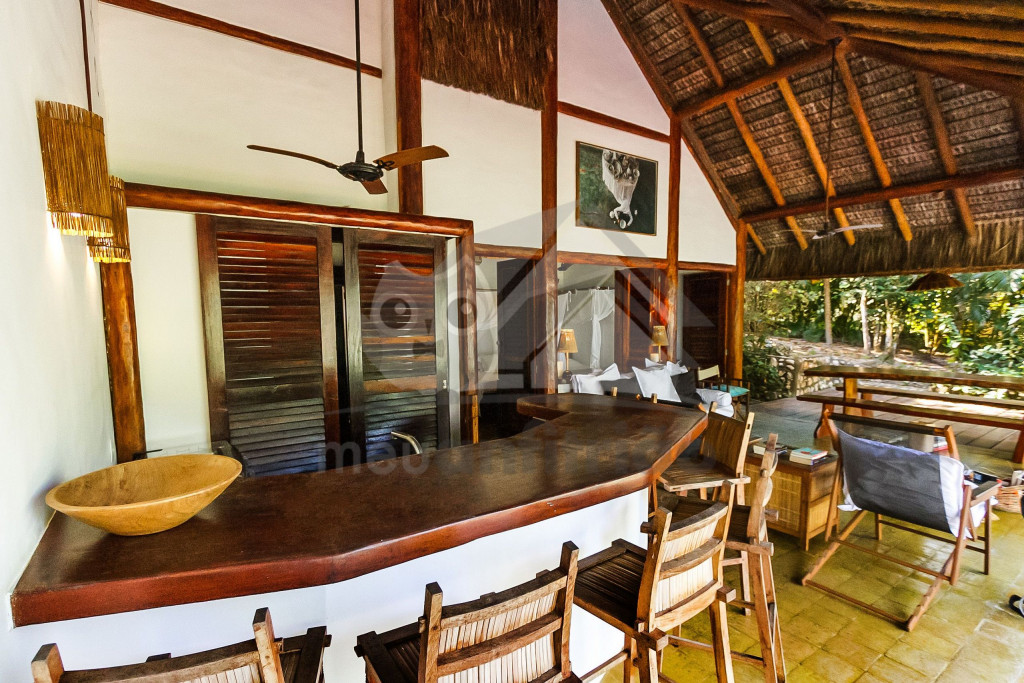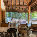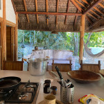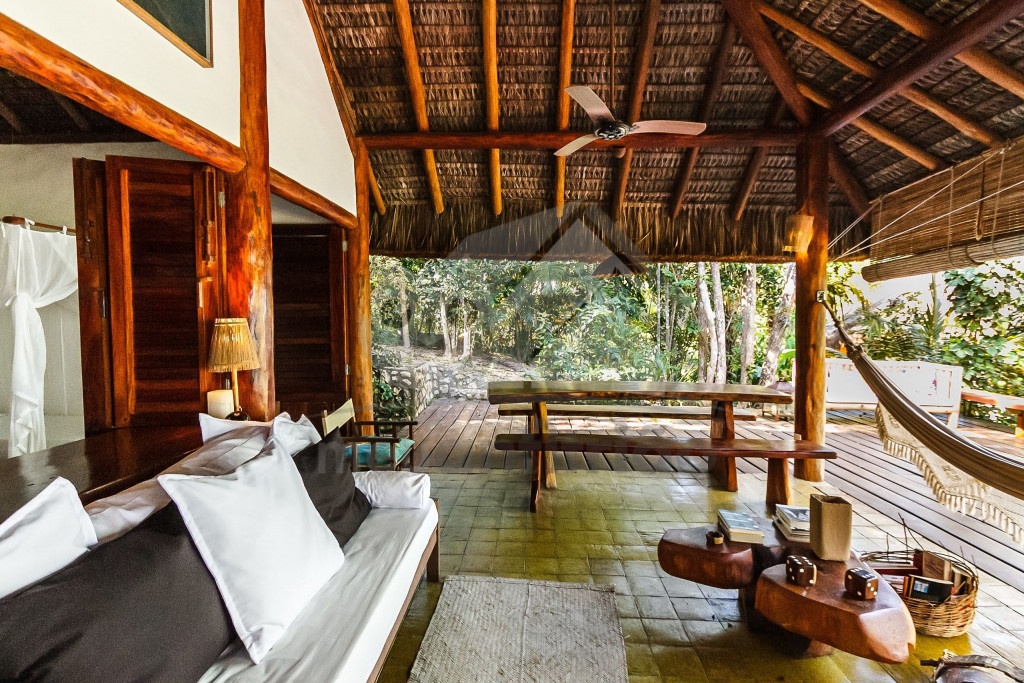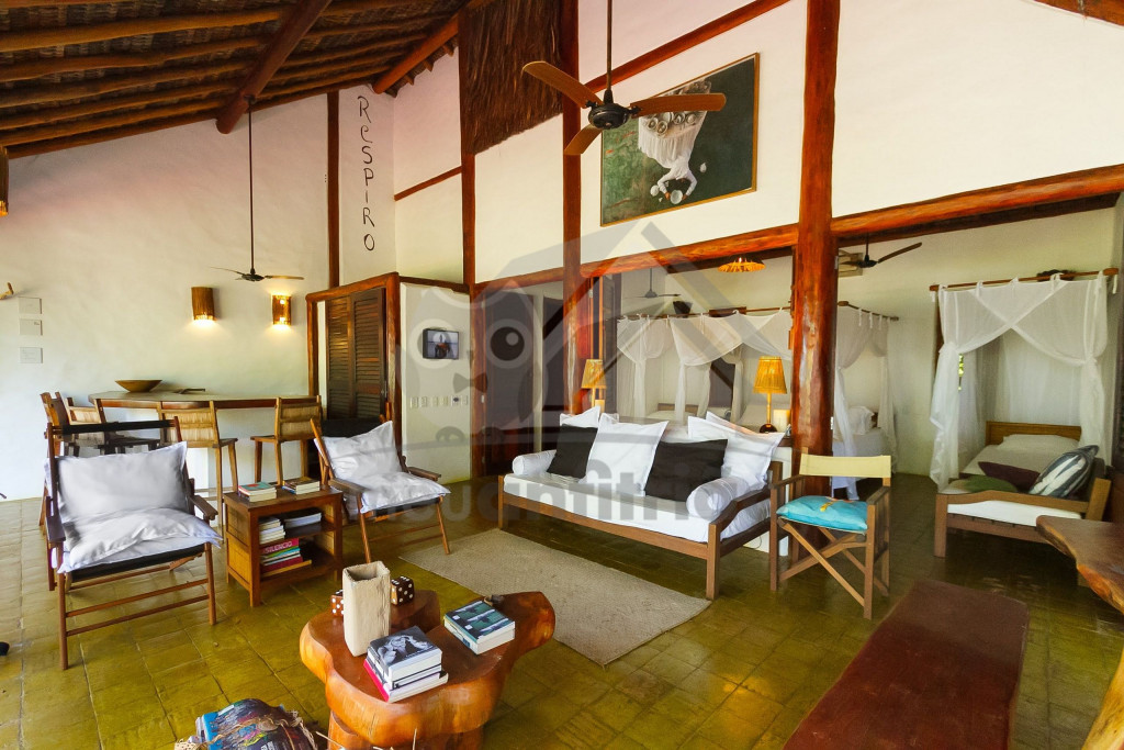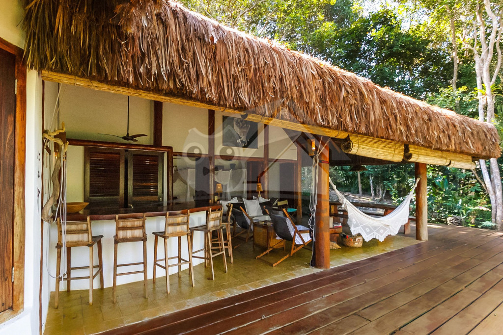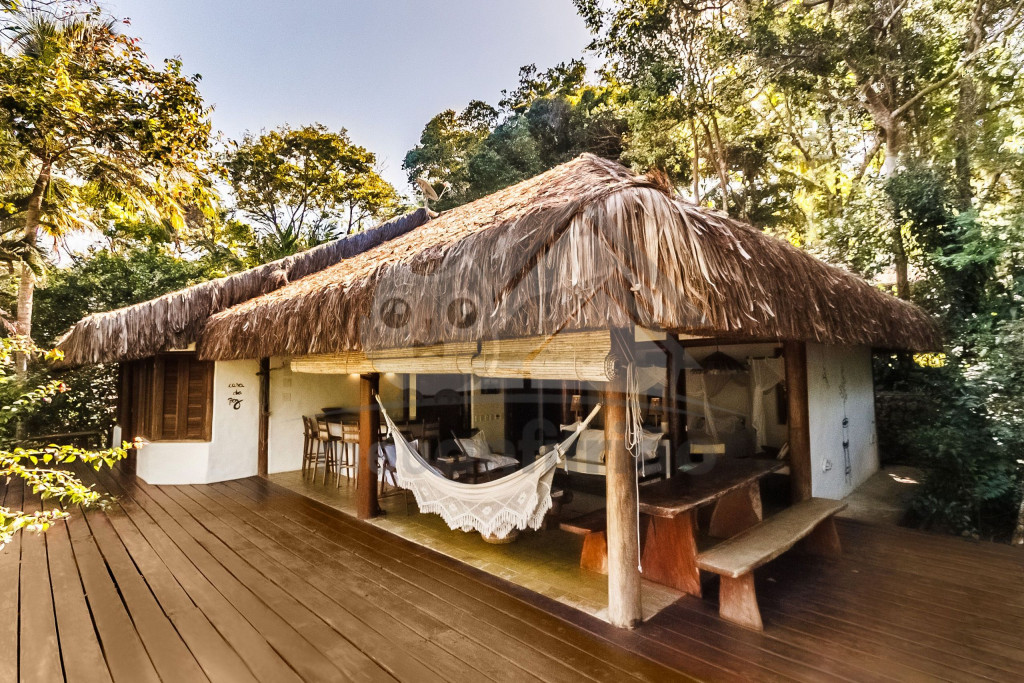A sala é ampla e conta com sofás, poltronas e redes de descanso. A cozinha é completa com todos os utensílios necessários para o dia a dia. A surpresa aqui é que os dois ambientes (sala e cozinha) são ao ar livre e integrados a uma varanda bem grande com uma vista incrível do mar, perfeito para aproveitar os melhores momentos em família em contato com a natureza. Oferecemos, ainda, internet e serviço de TV a cabo (Sky).