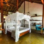 Nosso cantinho de paz acomoda até seis pessoas e oferece o máximo conforto para que a viagem seja ainda mais proveitosa. No total são duas suítes, sendo uma com cama de casal e outra com duas camas de solteiro e uma cama de casal. Ambos os quartos possuem ar-condicionado e todas as camas têm mosquiteiro.