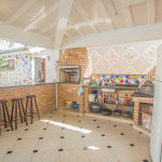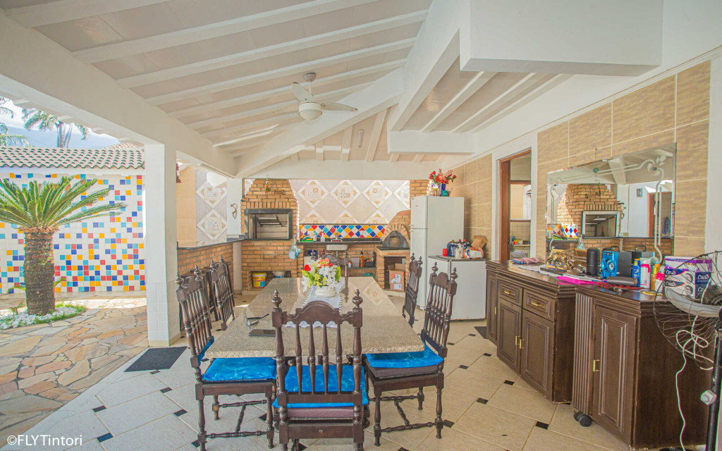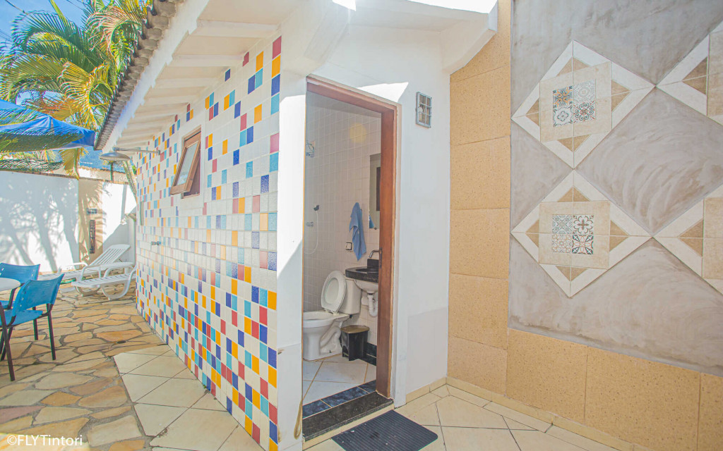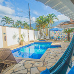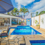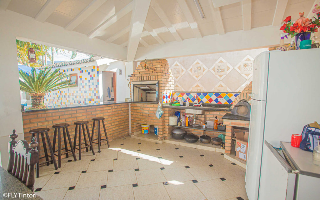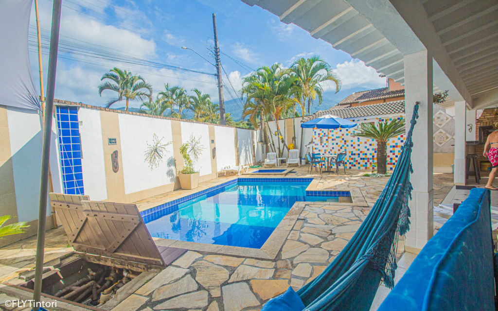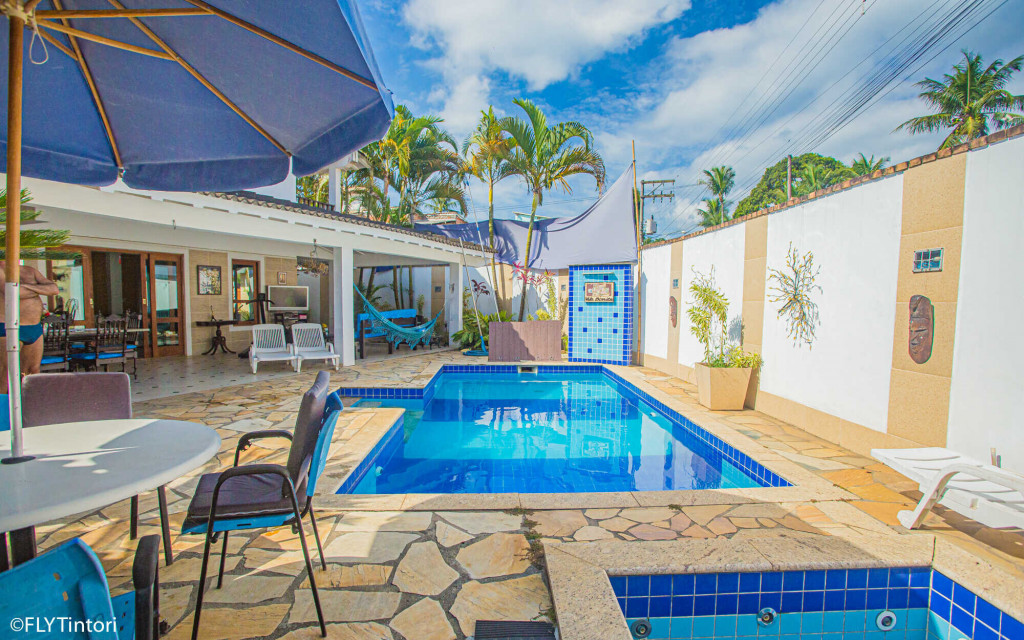 Cozinha e sala integradas com área externa – com piscina, churrasqueira e forno de pizza – a 5 min da praia do Perequê e 2 min do centrinho, com lojinhas, restaurantes, supermercados, farmácias e bancos.