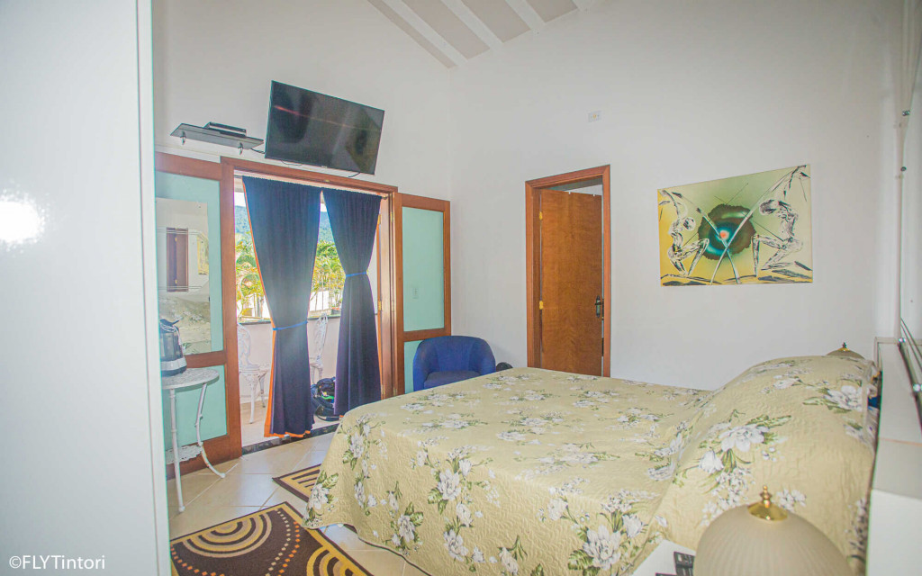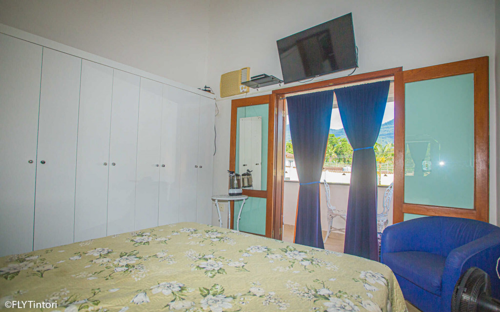 São 5 suítes, com capacidade para 12 pessoas, contando com 2 colchões extras, todas com ventilador de teto e televisão, e duas com ar condicionado também.