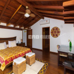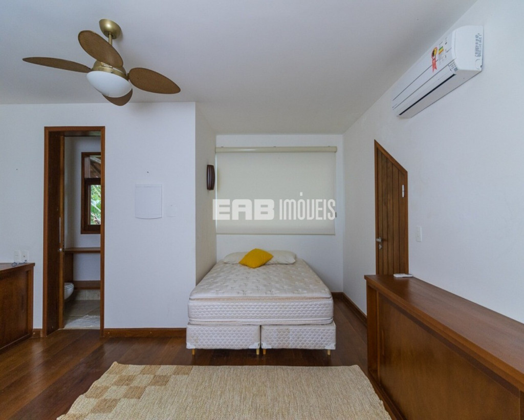 Todos os dormitórios têm ventilador e ar condicionado. No térreo, há duas suítes de casal e dois dormitórios, tipo suíte americana (com banheiro compartilhado). No piso superior, fica a suíte master. Há, ainda, uma suíte externa.