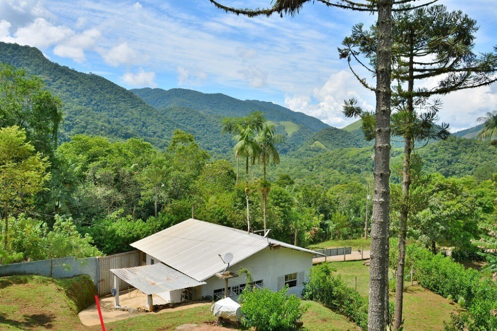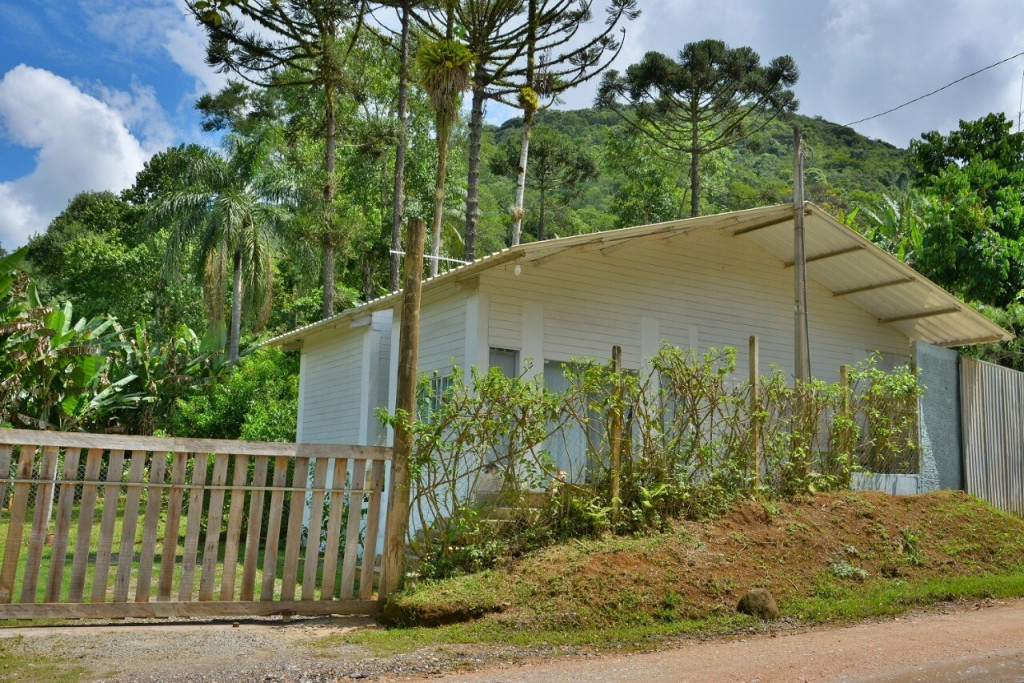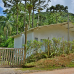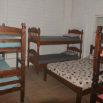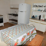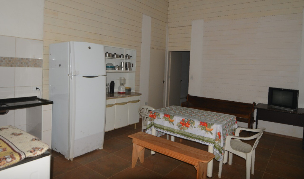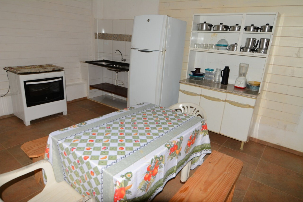 CASA DE CAMPO EM IPORANGA COM 2 DORMS CONTENDO BELICHES, CAMA DE CASAL E TRAVESSEIROS. BANHEIRO COM BOX, LAVABO, COZINHA COMPLETA COM UTENSÍLIOS, MESA E BANCOS DE MADEIRA.