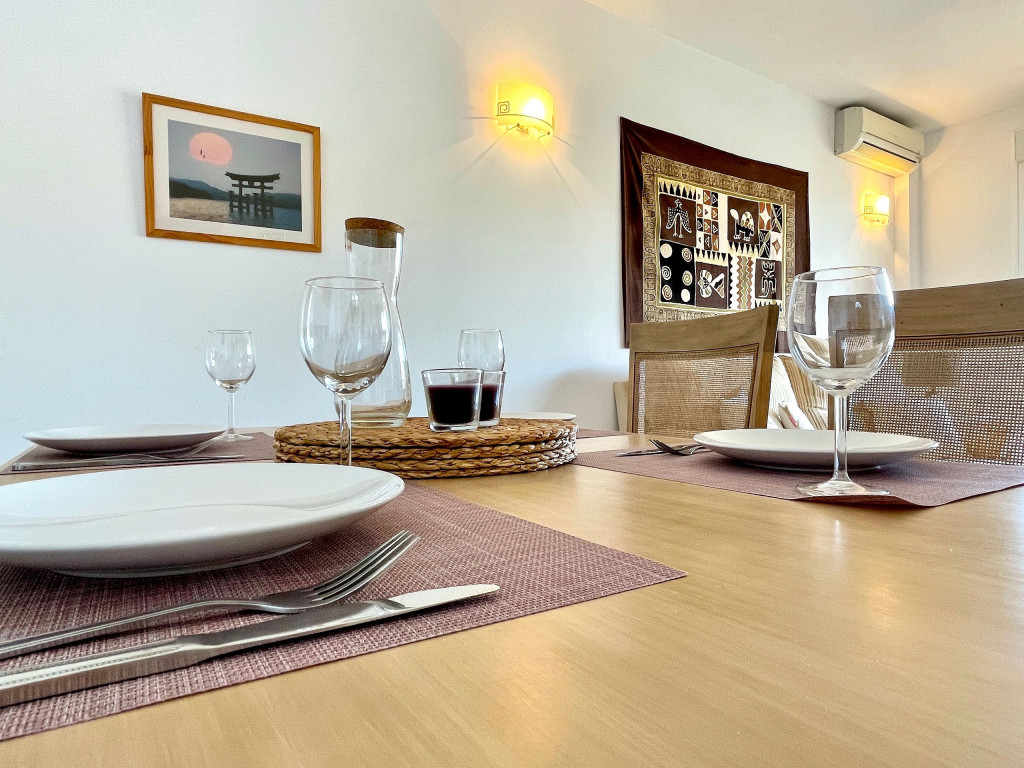 Terraço acessível a partir do quarto principal e da sala de estar. Mesa de jantar para 4 pessoas no terraço e 2 espreguiçadeiras.