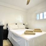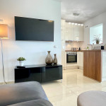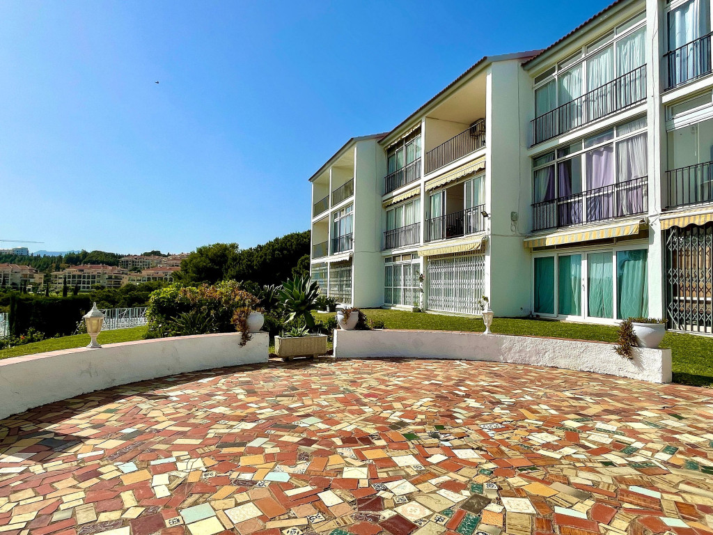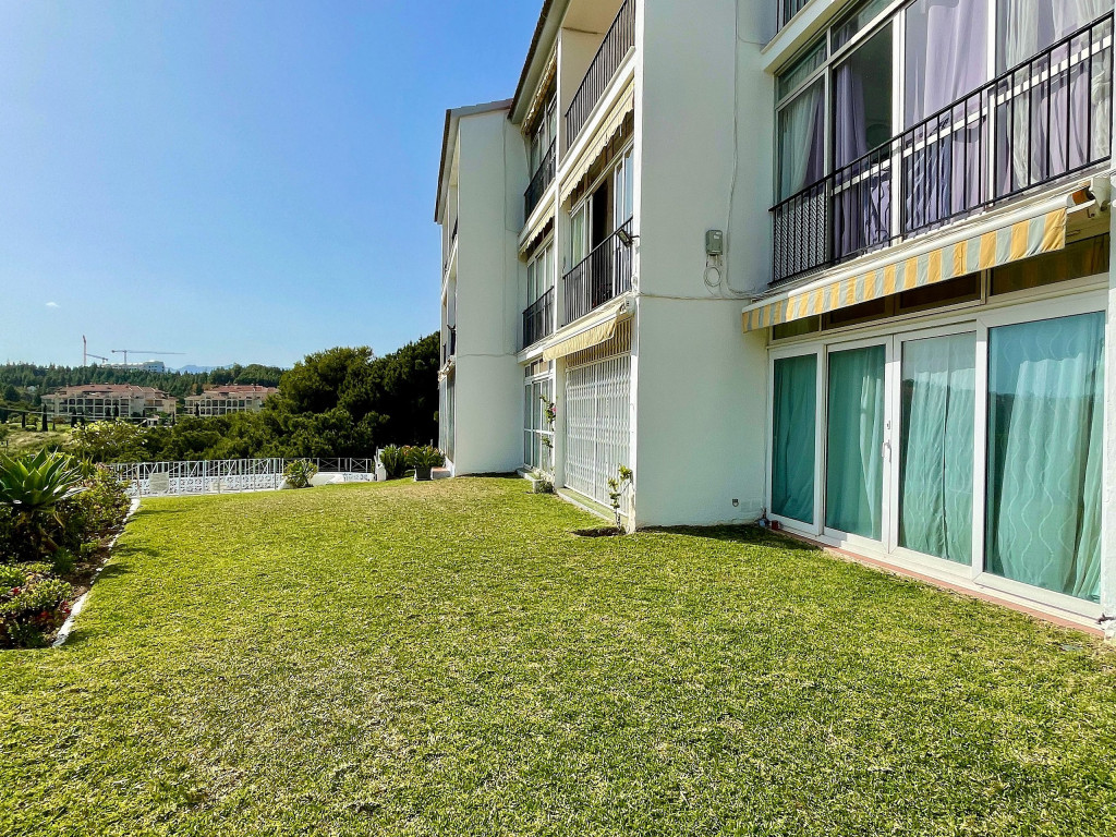 Um apartamento térreo renovado moderno com espaço exterior relvado a 300 metros da praia.
