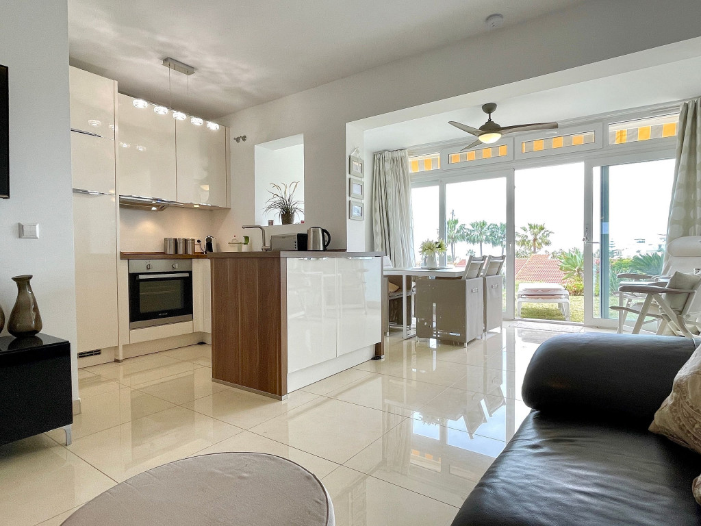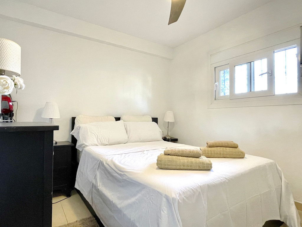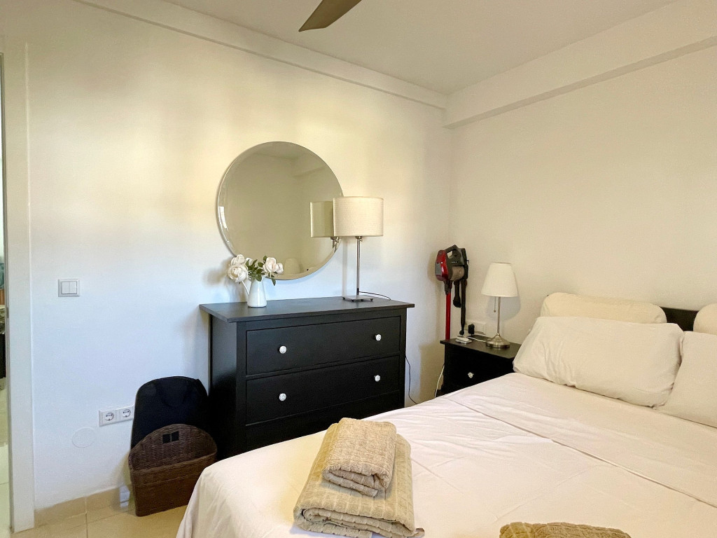 Totalmente equipado com 1 quarto e sofá-cama duplo, com ar condicionado / aquecimento, espreguiçadeiras, máquina de lavar roupa, máquina de café Nespresso e muito mais. Se você abrir as portas do terraço, poderá ver o mar e terá acesso ao jardim. A 15 metros do apartamento está a piscina para se refrescar durante os dias quentes de sol na Espanha.