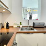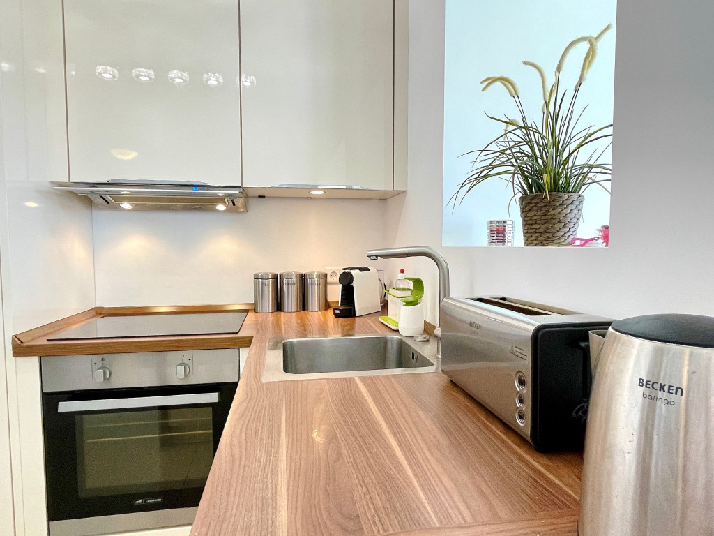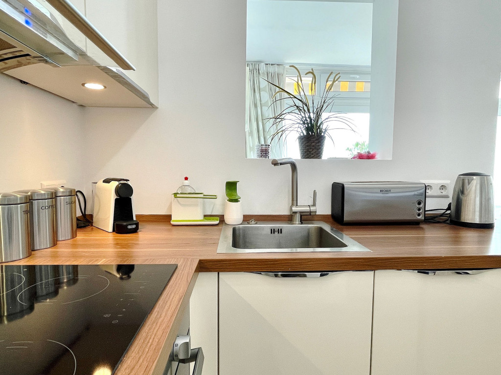 Cozinha totalmente equipada para estadias curtas e longas. A roupa de cama e as toalhas estão incluídas no preço da limpeza final.