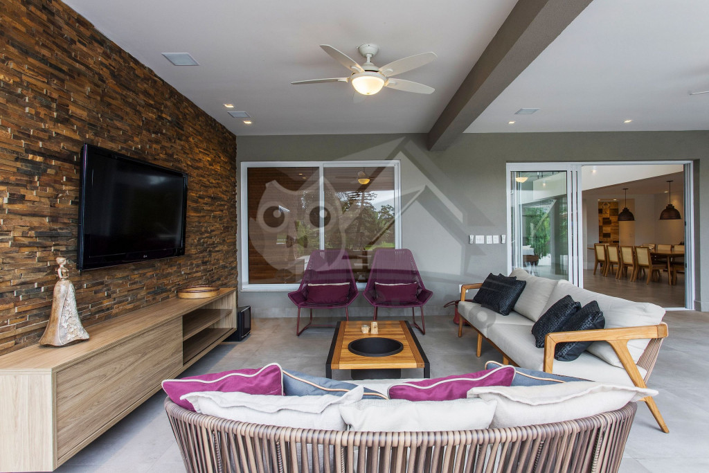 Localizada no Condomínio de alto padrão Costa Verde da Tabatinga, em Caraguatatuba, nossa casa de 650 m2 acomoda 16 pessoas em 6 suítes. Contamos com uma área externa com piscina, jacuzzi, amplo jardim e varanda gourmet.