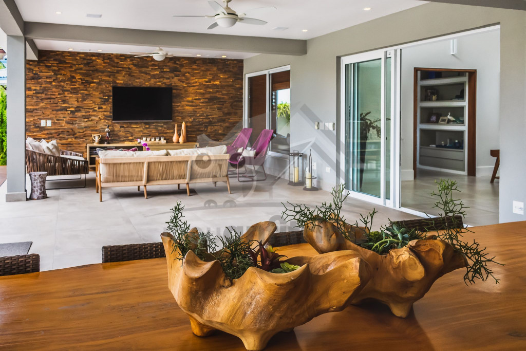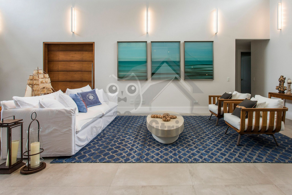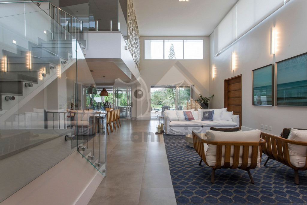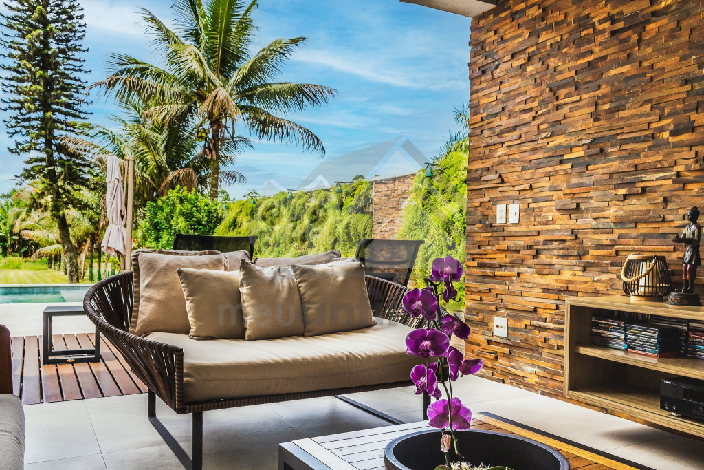 A casa fica a poucos metros da praia do Tabatinga, privativa do condomínio.