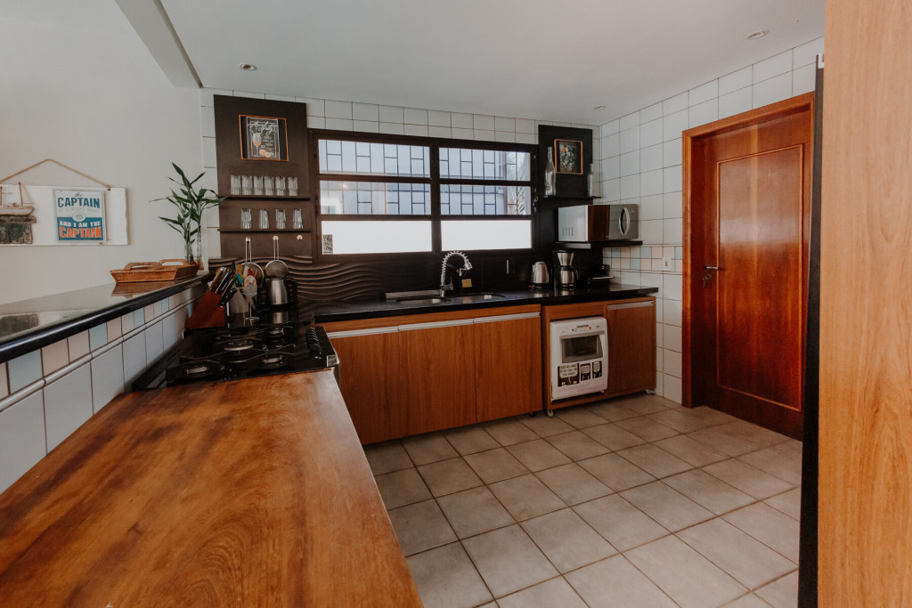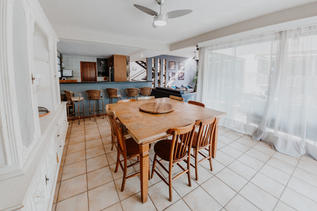 Ambiente de 380 metros quadrados. Cozinha completa com fogão, forno elétrico, eletrodomésticos de primeira linha, geladeira side by side, sala de estar e jantar, piscina privativa, churrasqueira com lounge, lounge superior com vista para área verde, TV, canais a cabo, serviço de streaming (Netflix), WI-FI de 400 mega, rouparia de cama (linha hotel branca) e banho (toalhas de fio egípcio). Tudo isso para proporcionar maior conforto aos nossos hóspedes, para que se sintam em casa, em um perfeito refúgio para descansar e desvendar o que há de melhor em Jurerê Internacional.