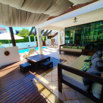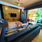 A casa é projetada para até 10 pessoas com o máximo de comodidade. Ambientes amplos e confortáveis são características do espaço que dispõem duas suítes e dois quartos, todos climatizados: