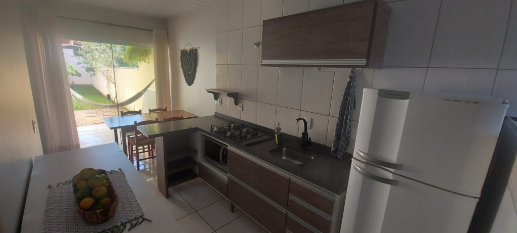 Casa de praia térrea com pátio, churrasqueira e espaço para fogueira ao ar livre que vão garantir momentos de confraternização e relaxamento ideais para as suas férias. A casa conta com 2 confortáveis quartos de casal, 1 banheiro, sala de estar/jantar e cozinha completa. Também disponibilizamos cadeiras e guarda-sol para 2 pessoas. Além disso a casa está localizada no "centrinho" de acesso à Praia do Rosa com supermercado, farmácia, lojas e restaurantes. Compreende garagem para até 2 carros.
