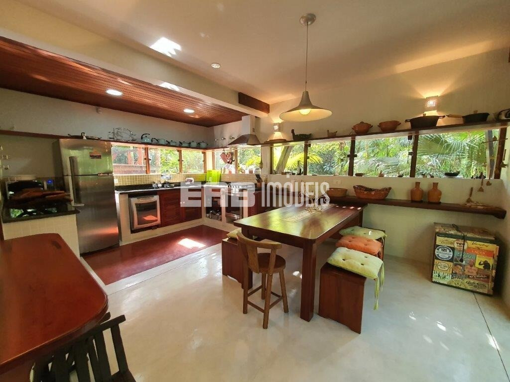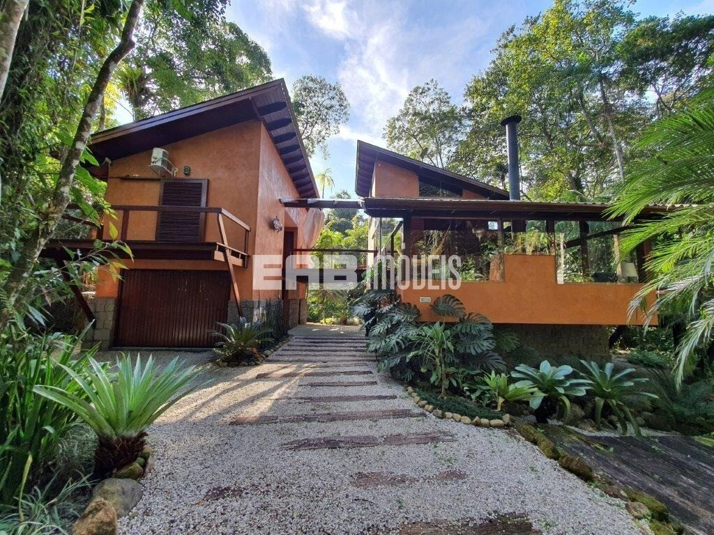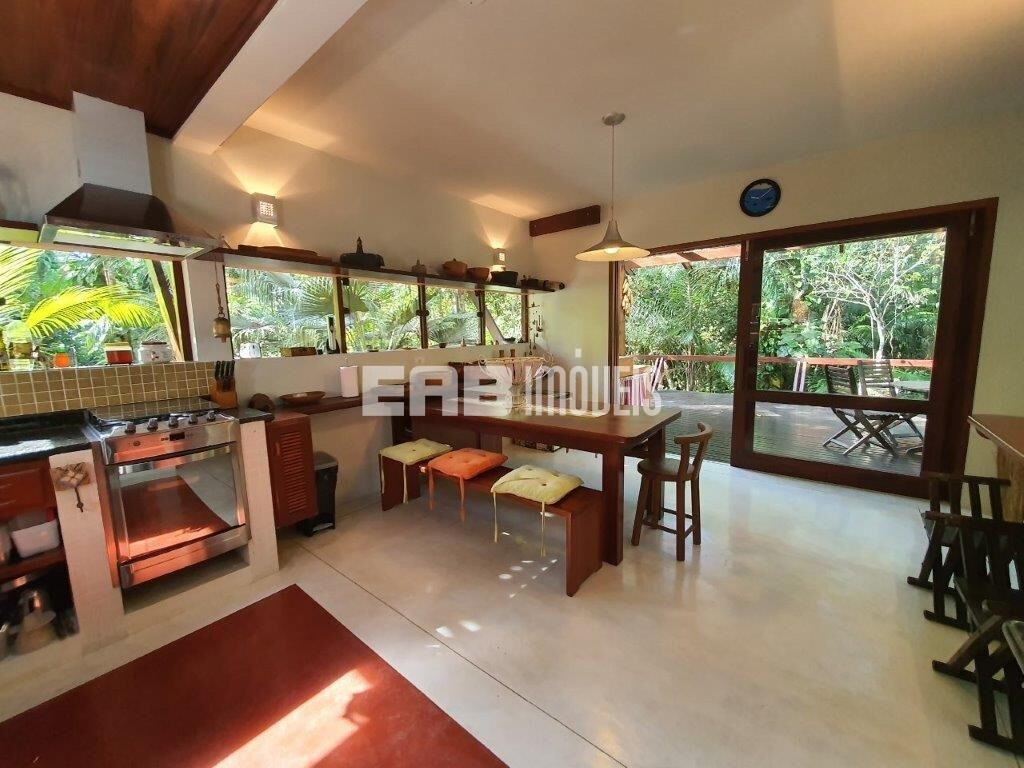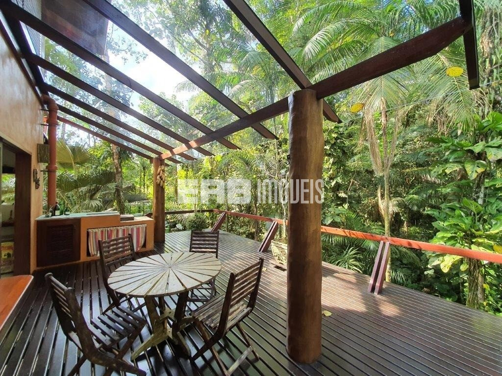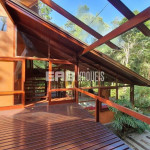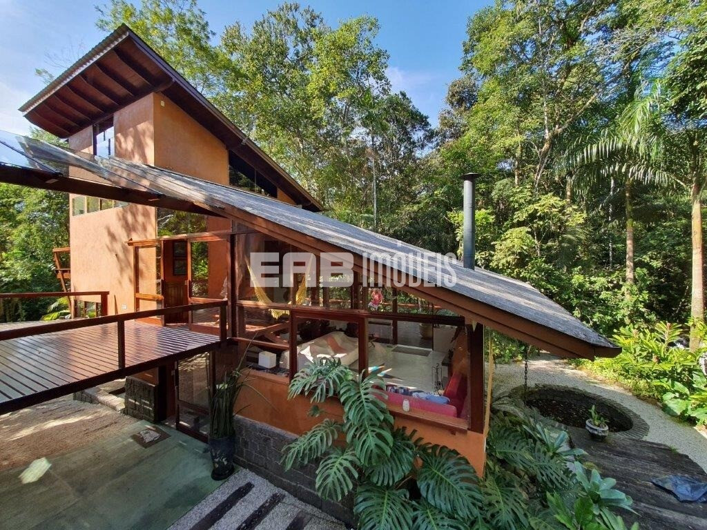 Erguida sobre lajes elevadas do solo, para fugir da umidade, a casa incorpora elementos da bioarquitetura para proporcionar iluminação e conforto térmico, a exemplo do duto exaustor do fogão a lenha, que passa por uma parede e aquece o ambiente em dias frios. Painéis de vidro e janelas basculantes permitem a ventilação natural e mantêm a vista da Mata Atlântica sempre em destaque.