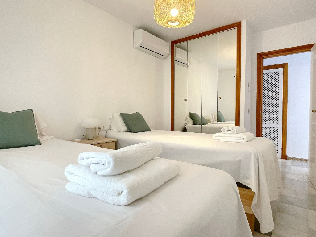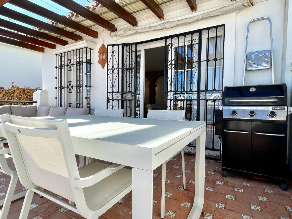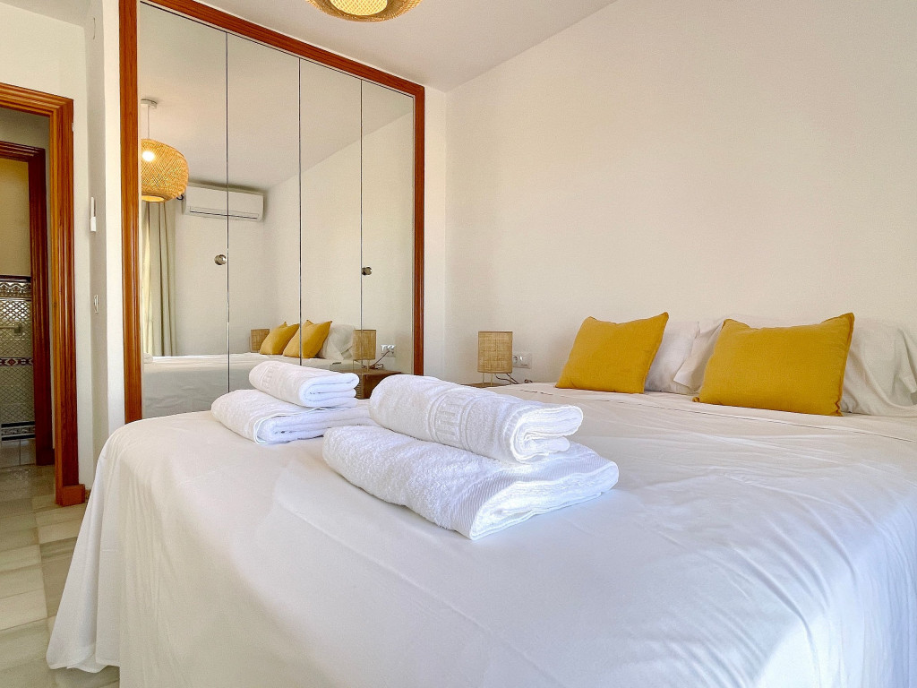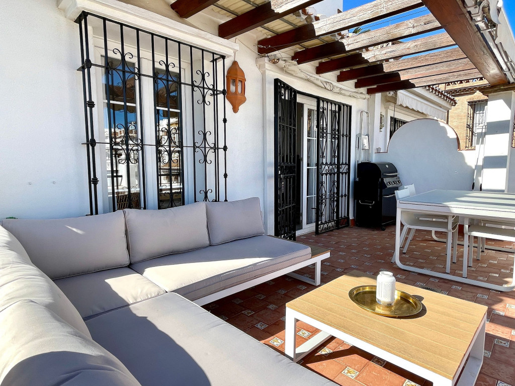 Esta é uma casa geminada com 2 plataformas e entrada privada no prestigioso Mijas Golf, Puebla Aida. A casa está dividida em 2 pisos e 2 terraços. Aqui você pode desfrutar de uma vista direta sobre a piscina mais próxima do apartamento, vista para o campo de golfe e vista para o mar. É uma casa de 2 quartos, cozinha totalmente equipada e 2 banheiros.