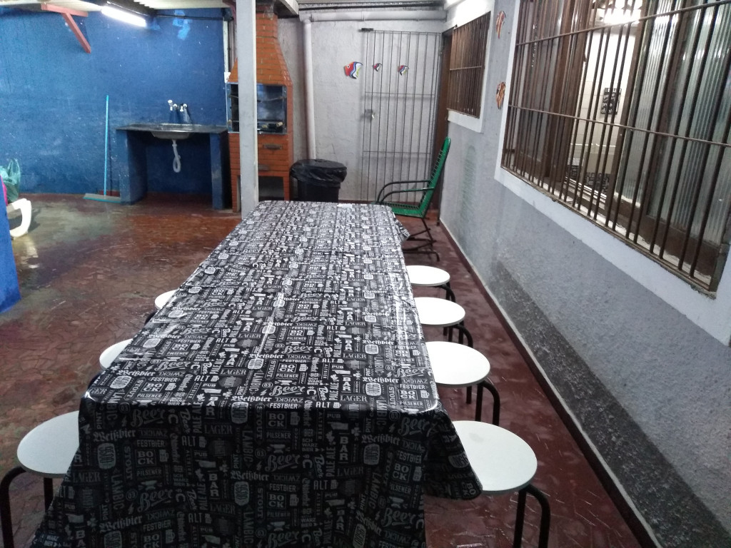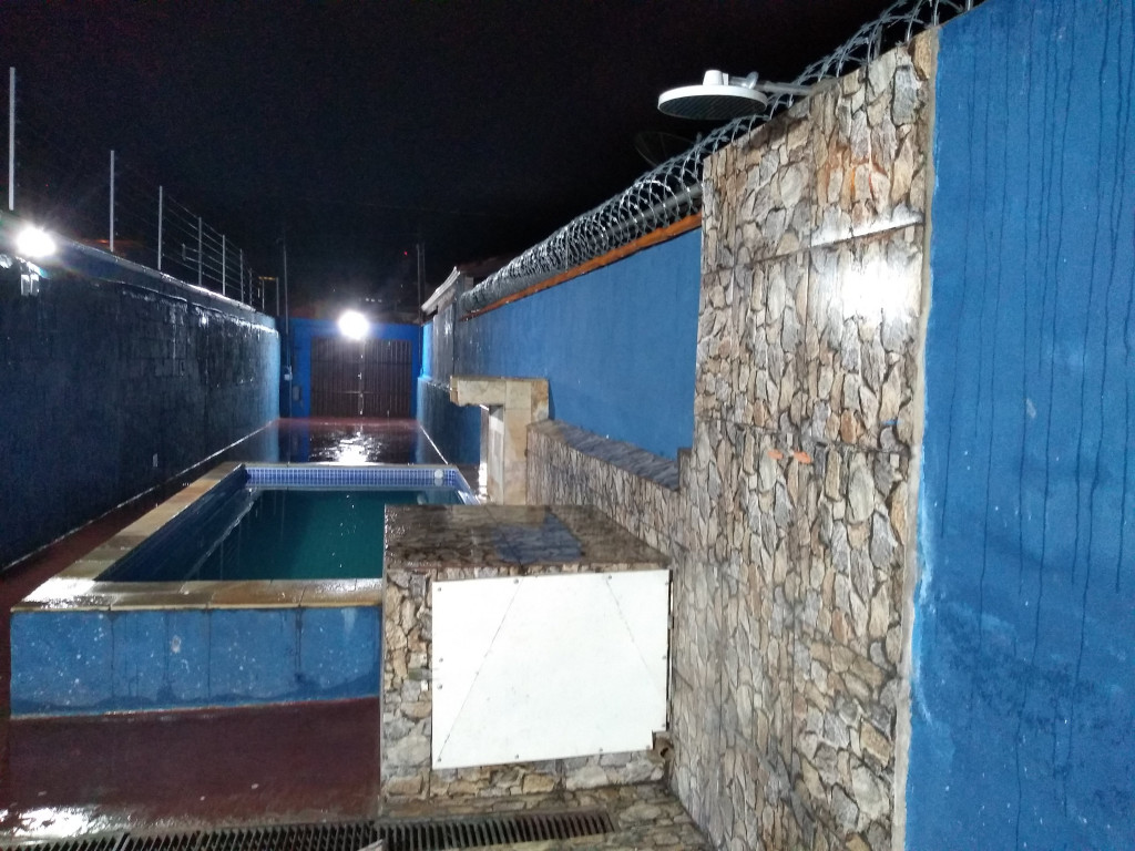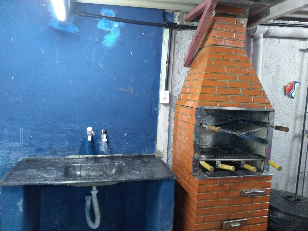 Piscina e churrasqueira.