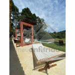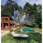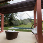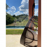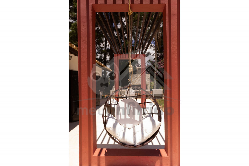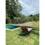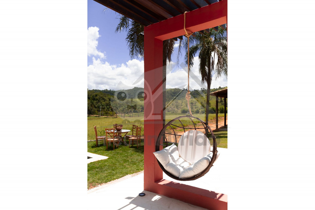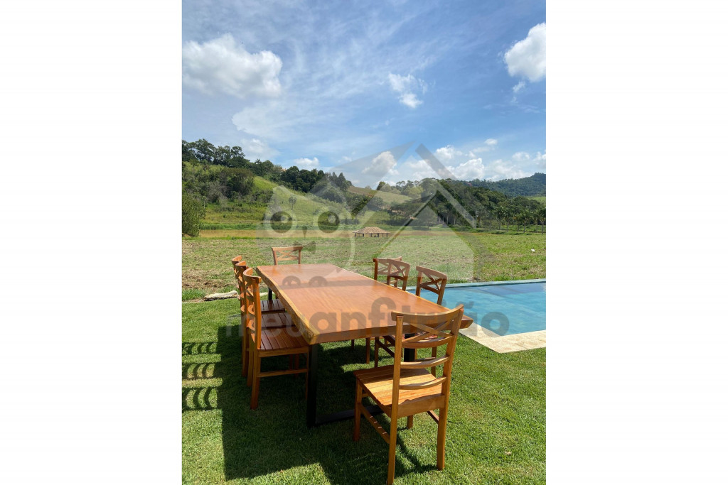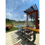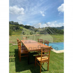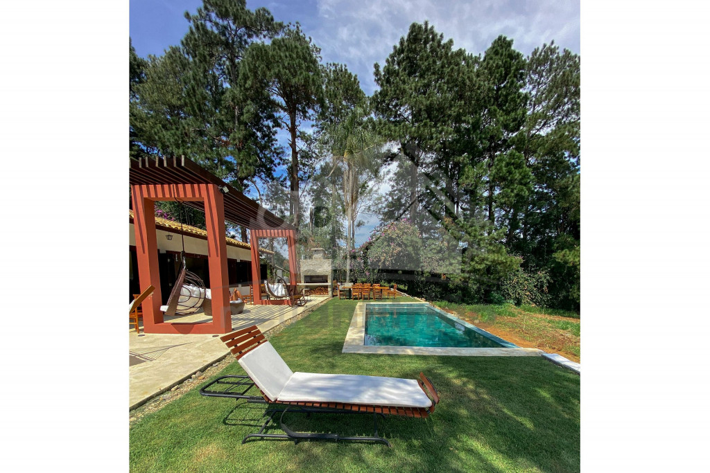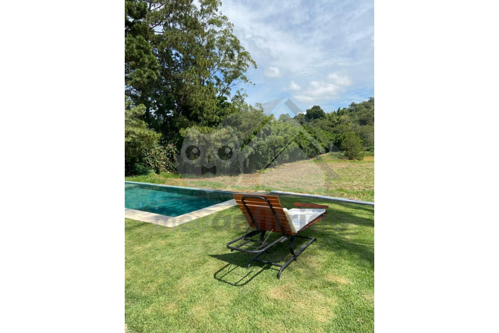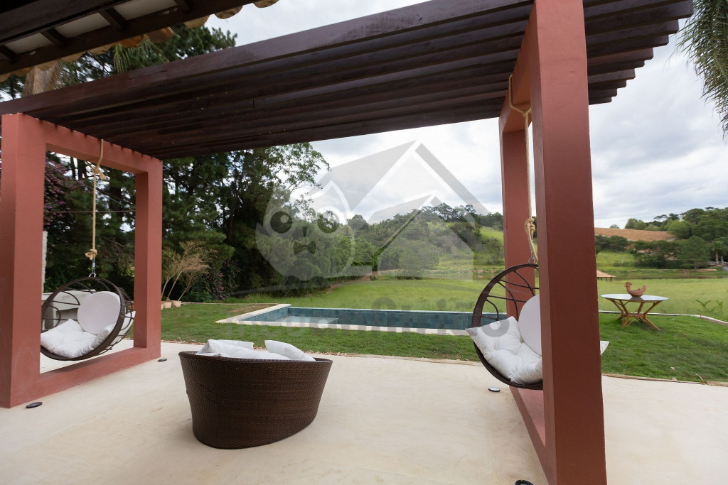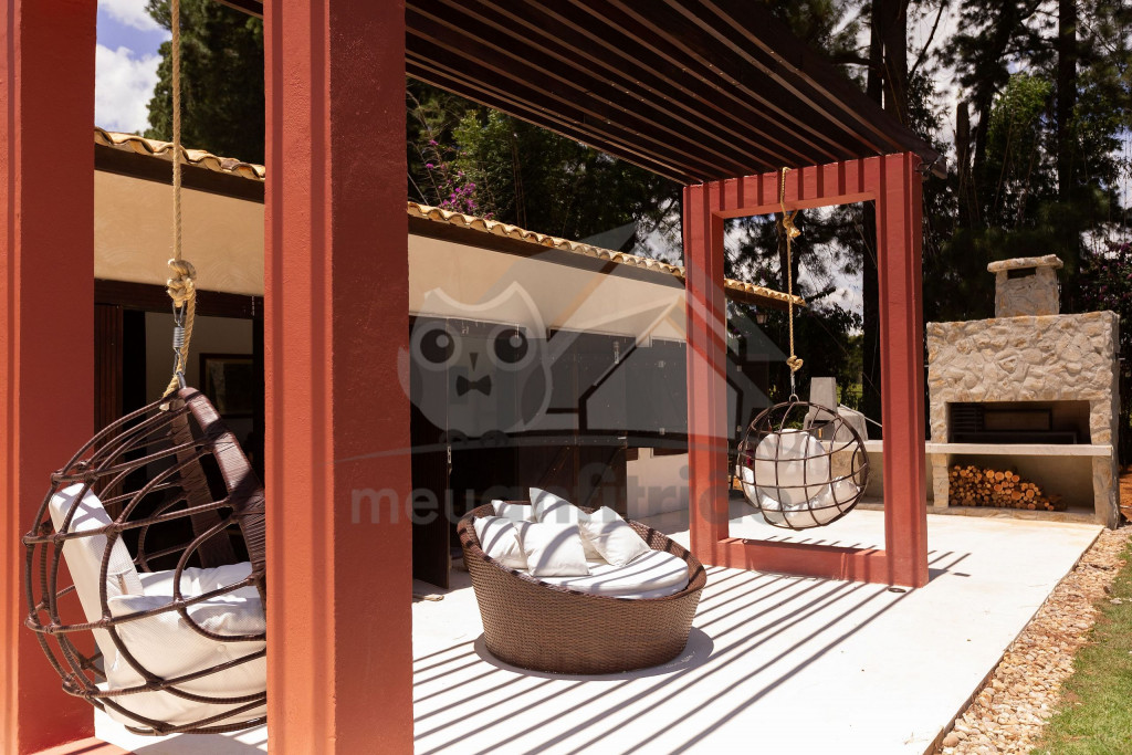 Na área externa, dispomos de uma piscina nova com borda infinita, forno de pizza a lenha, churrasqueira de parrilla argentina e cadeiras de balanço suspensas, tudo isso cercado de muito verde e com uma vista linda.