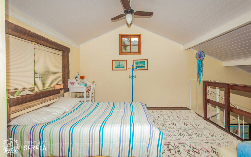 1 quarto mezanino com uma cama de casal e varanda