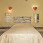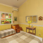 1 quarto com uma cama de solteiro e uma beliche de solteiro