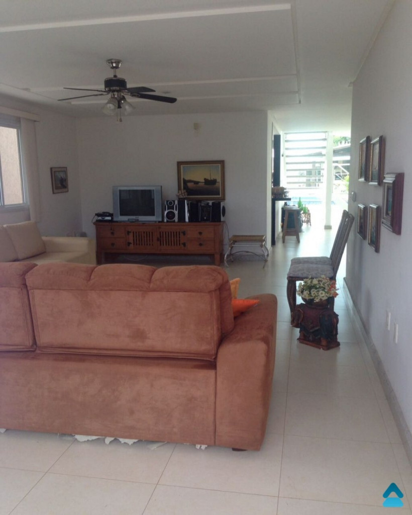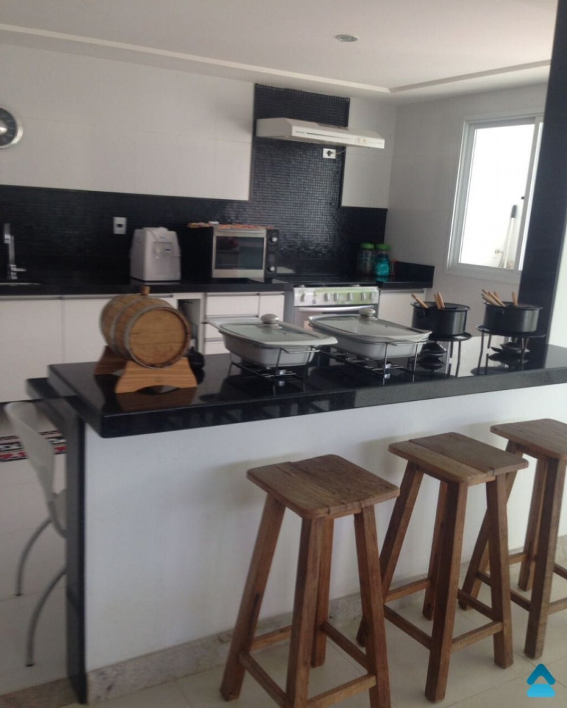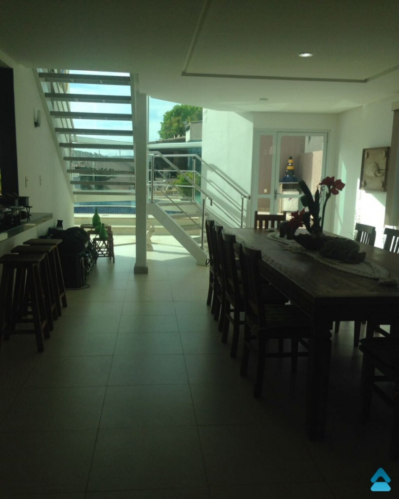 Casa Duplex para aluguel temporada em Nova Guarapari com 5 suítes, 2 salas, cozinha, copa, lavabo, 4 varandas, área de serviço, mobiliado, 4 vagas de garagem, piscina, churrasqueira e sauna.