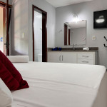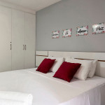 uma possiu 1 cama de casal com 2 camas de solteiro e a outra uma cama de casal, 1 cama de solteiro e 1 colchão, travesseiros ,enxoval de cama e banho, roupeiro para armazenar duas bagagens.
