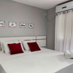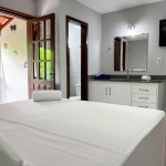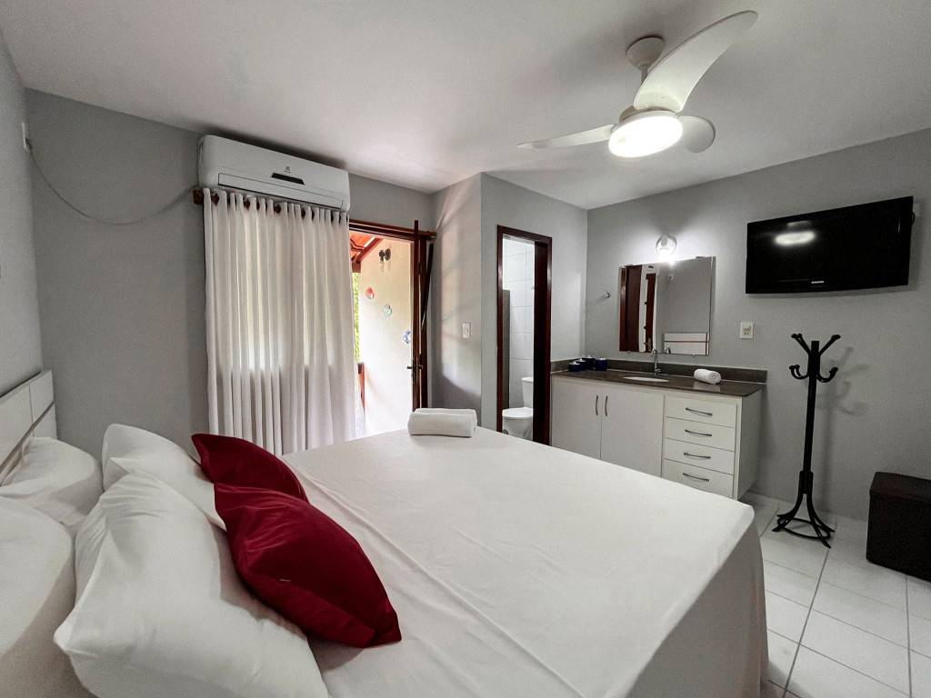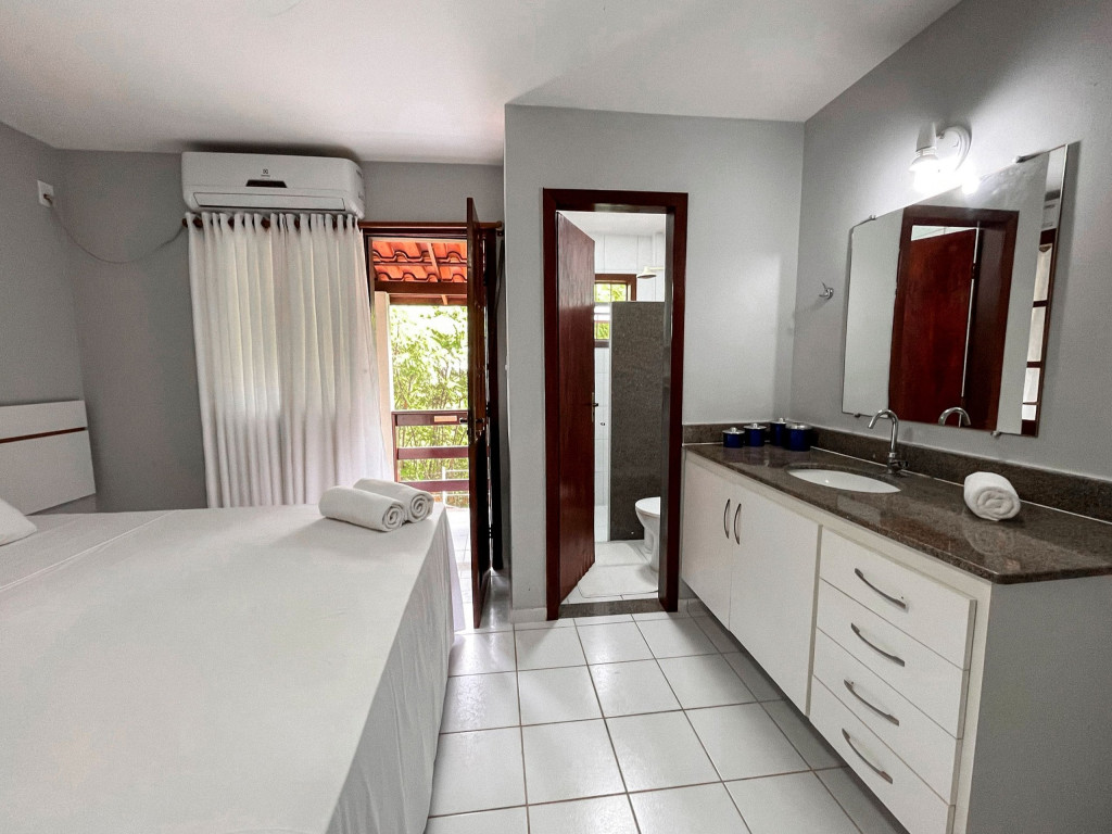 As 2 suítes no pavimento superior possuem ar condicionado, ventilador de teto,