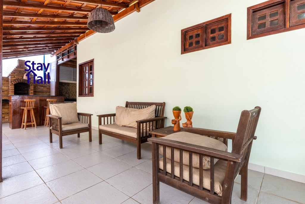 Acesso exclusivo aos cômodos da casa e aos espaços compartilhados do condomínio, que conta com piscina, campinho, salão de jogos e parquinho infantil.