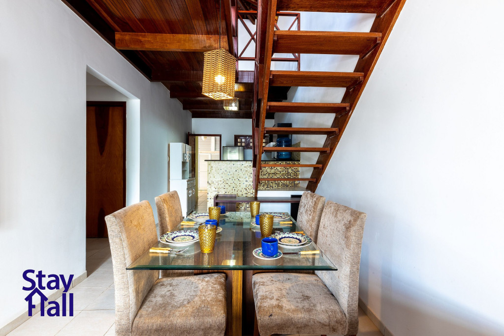 - A casa possui 1 quarto no térreo e 3 quartos no primeiro andar