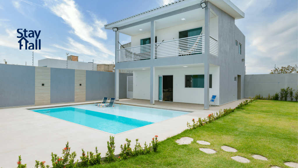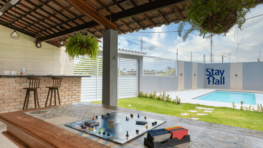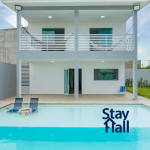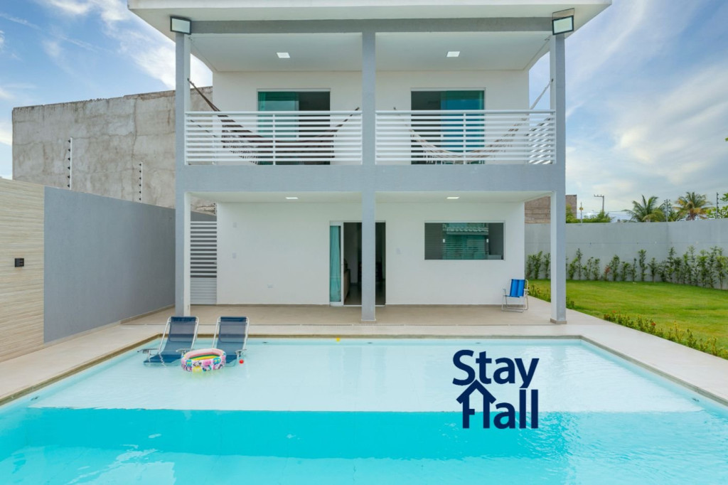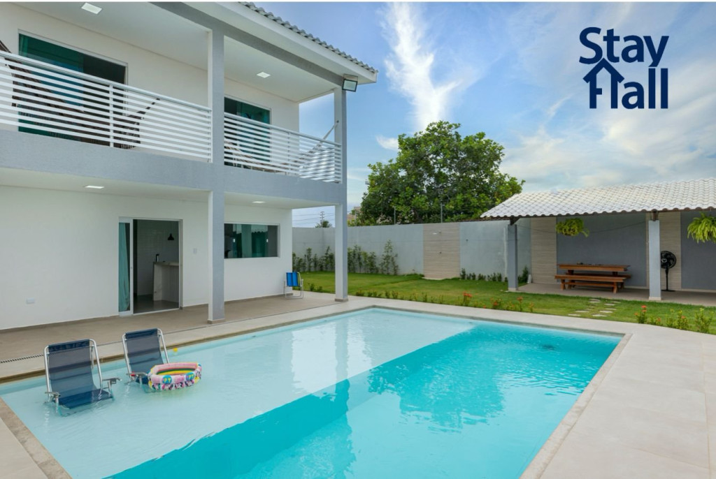 A casa possui espaço gourmet com churrasqueira na área externa, uma piscina privativa tamanho família.