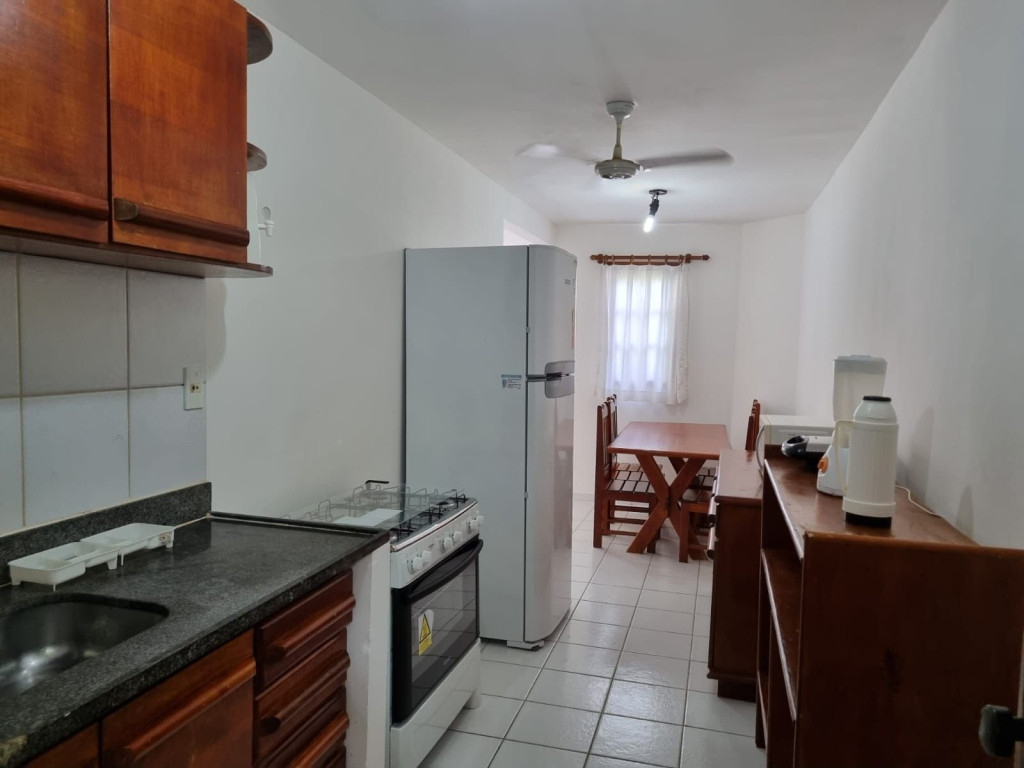 A cozinha é bem completa e oferece eletrodomésticos como liquidificador, micro-ondas,