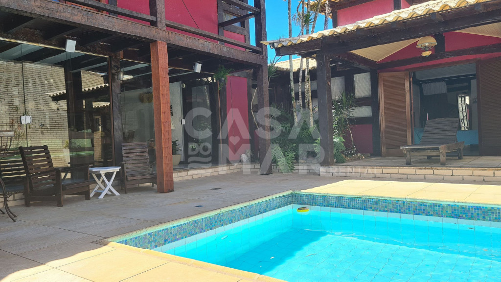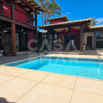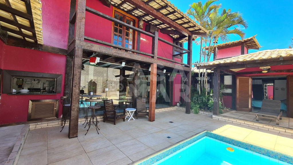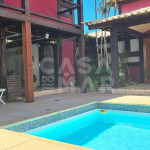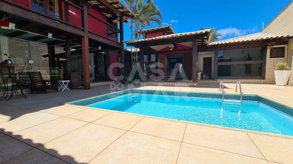 Casa espetacular, em condomínio super arborizado, com segurança 24hr. A casa oferece 4 suítes, com ar condicionado, ampla sala de estar, grande área de lazer, com piscina, chuveiro, espaço gourmet completíssimo.Alugamos essa linda casa, com duas funcionárias (uma cozinheira e uma arrumadeira), não inclusas no valor da reserva.A casa fica há apenas 50 metros da praia de Manguinhos.