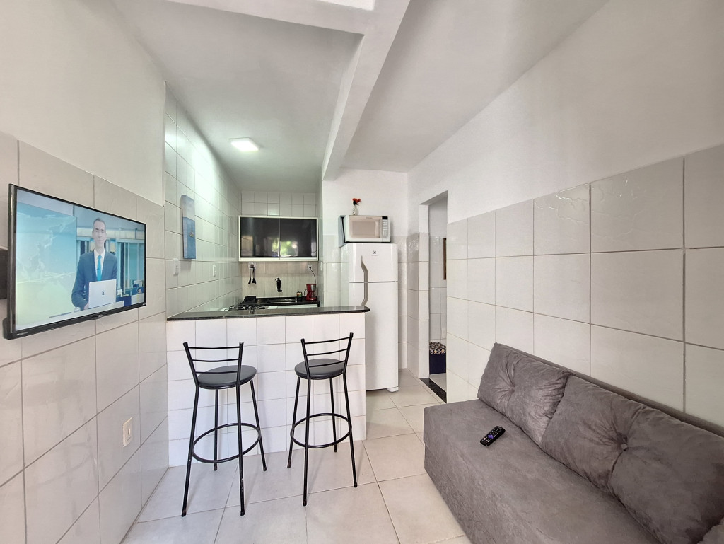 Venha morar neste condomínio tranquilo há 1 km da praia de Stella Maris e aeroporto. Quarto amplo, bancada de cozinha americana, armários na cozinha - muito arejado este quarto e sala, dentro de condomínio e com 1 vaga de garagem!