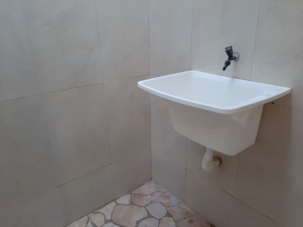 Casa pequena, sala e cozinha integrados (cozinha americana), com quarto grande e área de serviço externa, para locação mínima de 1 mês.