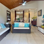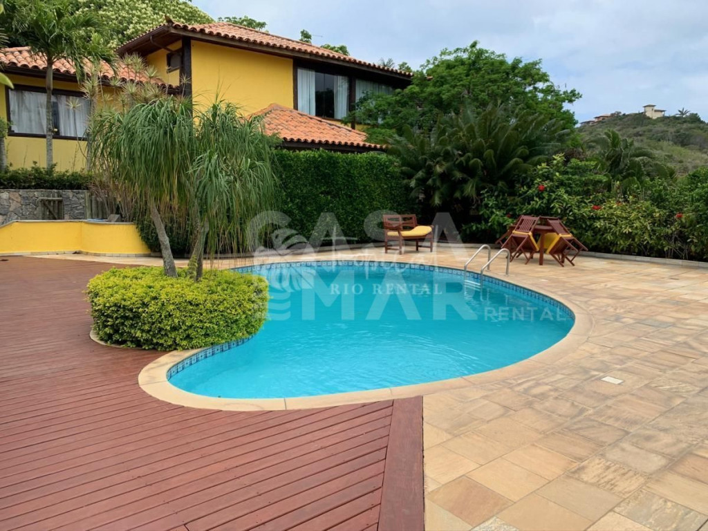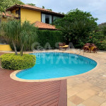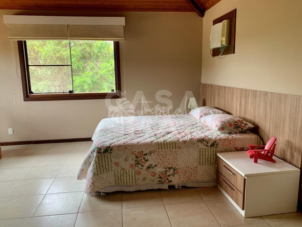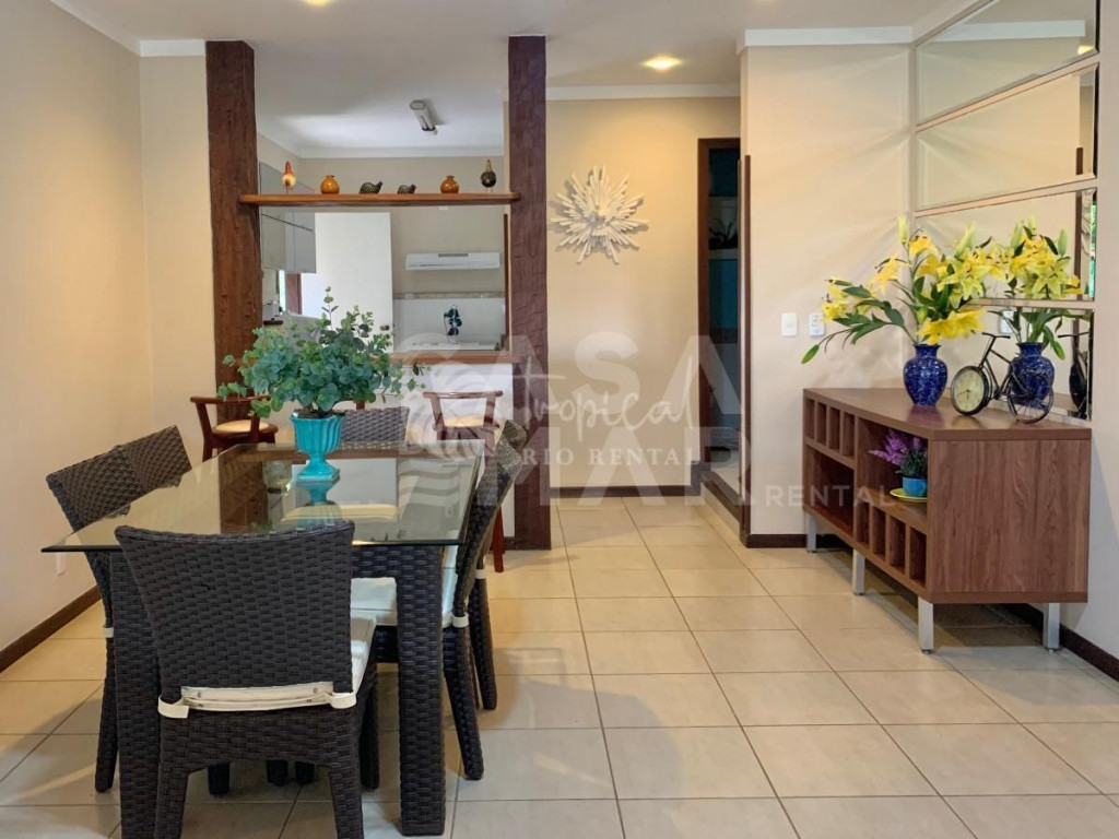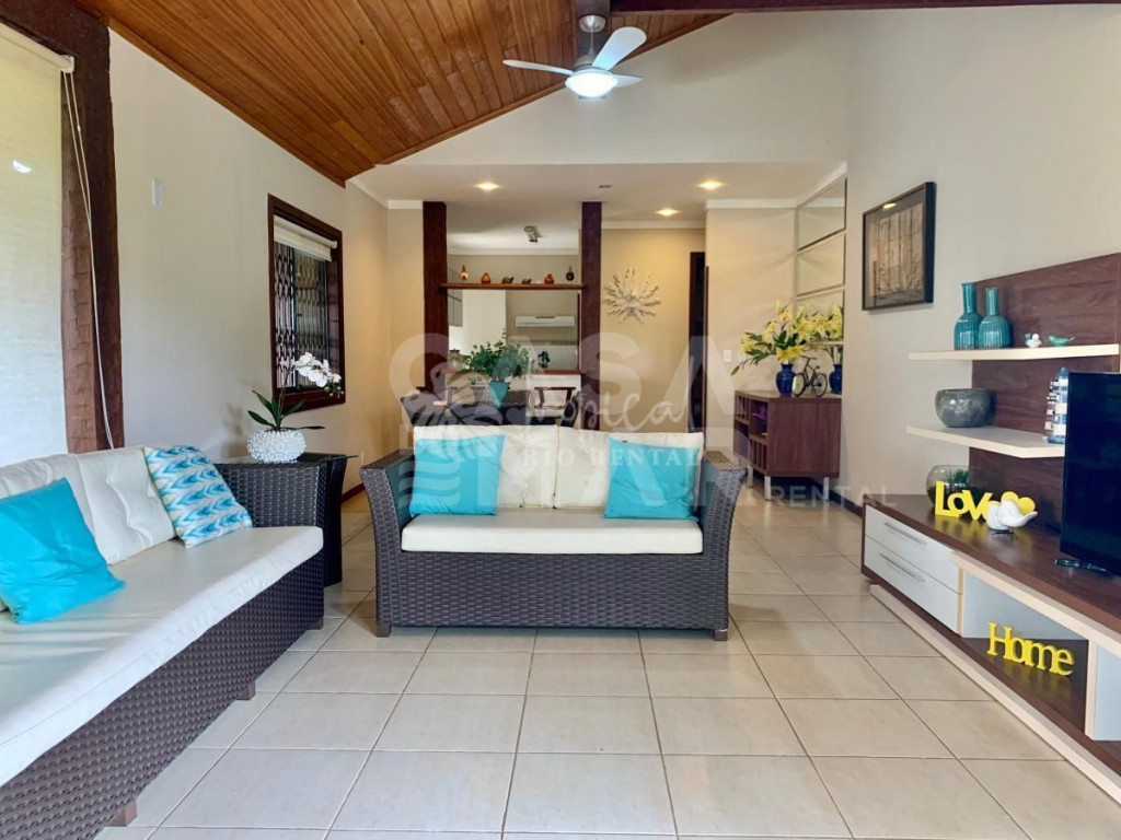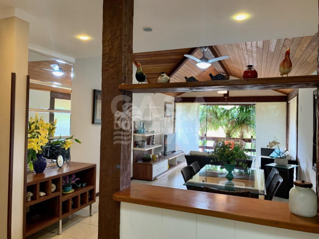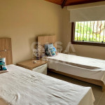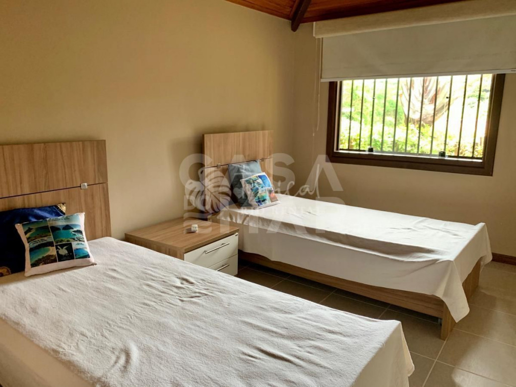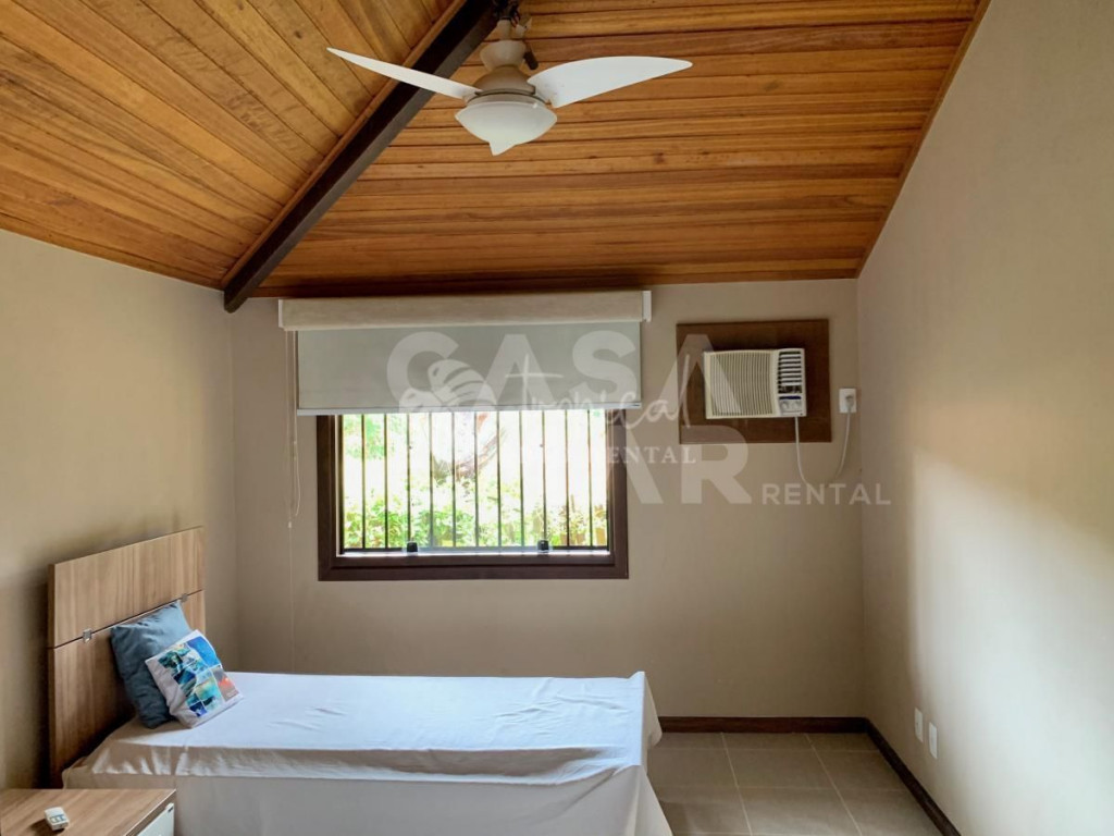 Casa em condomínio super seguro e com portaria 24 hrs. A casa tem 4 suítes e acomoda 10 pessoas em camas. Três suítes no primeiro andar, e a suíte master no segundo piso. No andar principal uma cozinha, sala de jantar e sala de tv - tudo integrado para manter a família unida. E na varanda, a área da churrasqueira a gás, mesas, cadeiras e redes, perfeito para um ambiente para aquele almoço que dura a tarde toda.