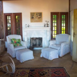 No primeiro andar a sala de estar com lareira, sala de jantar e cozinha, tudo numa planta aberta e com acesso a varanda. Também no 1o andar se encontra dois quartos, um com duas camas de solteiro e o outro com duas bi-camas (4 colchonetes de solteiro), e um banheiro.