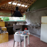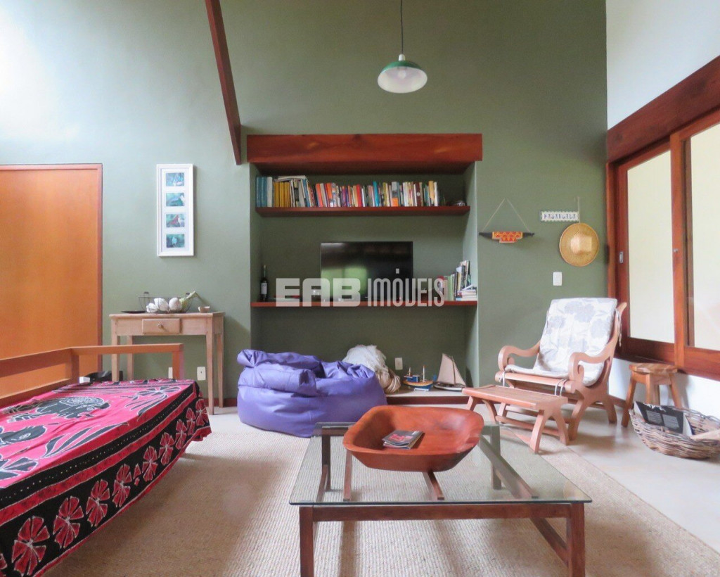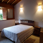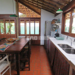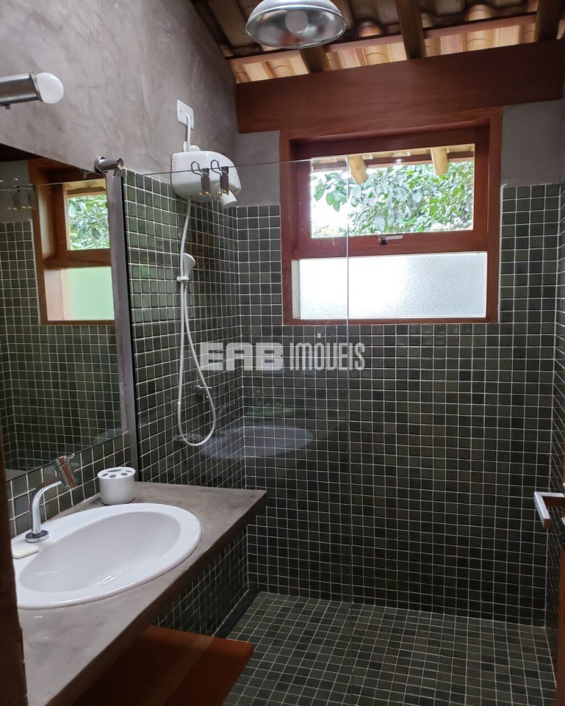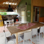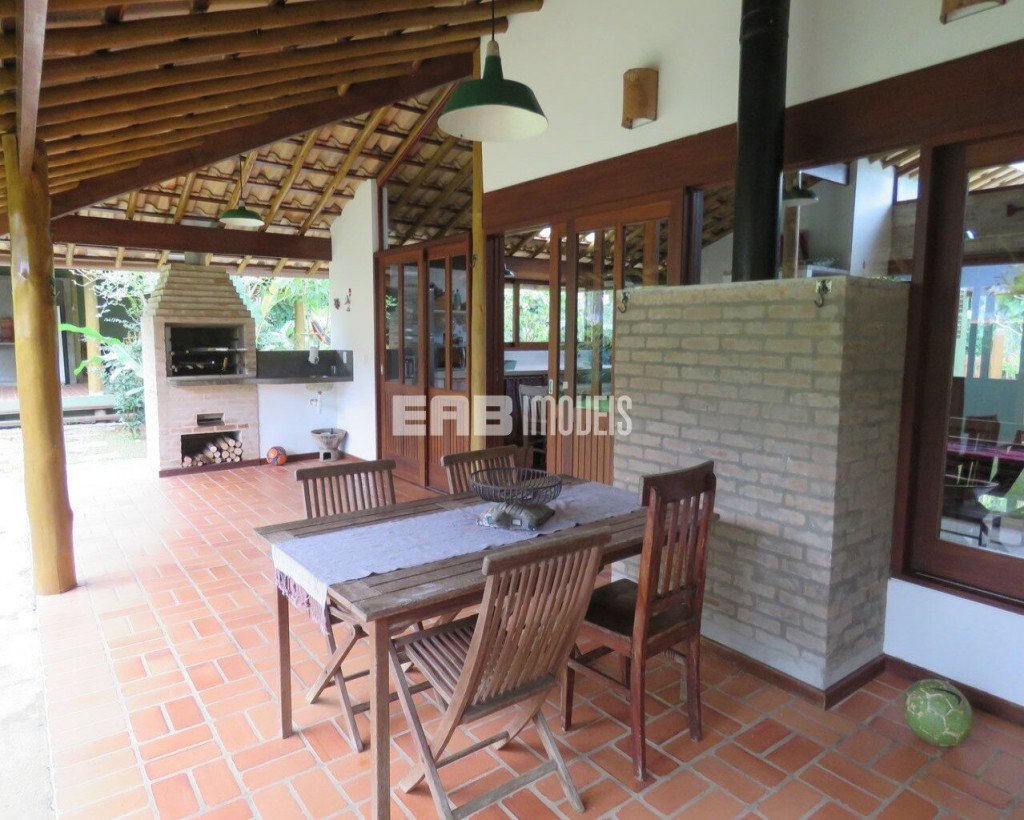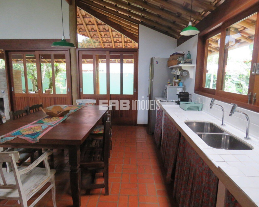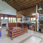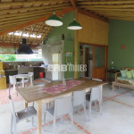 Lá fora, um amplo quiosque gourmet é um convite ao convívio. Elevado do solo, possui churrasqueira, fogão a lenha e forno de pizza. Ao lado, fica a suíte externa, num espaço muitíssimo agradável.