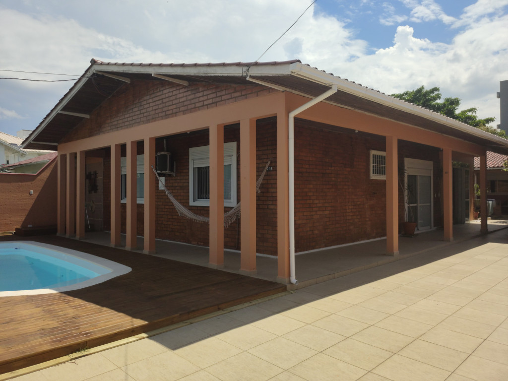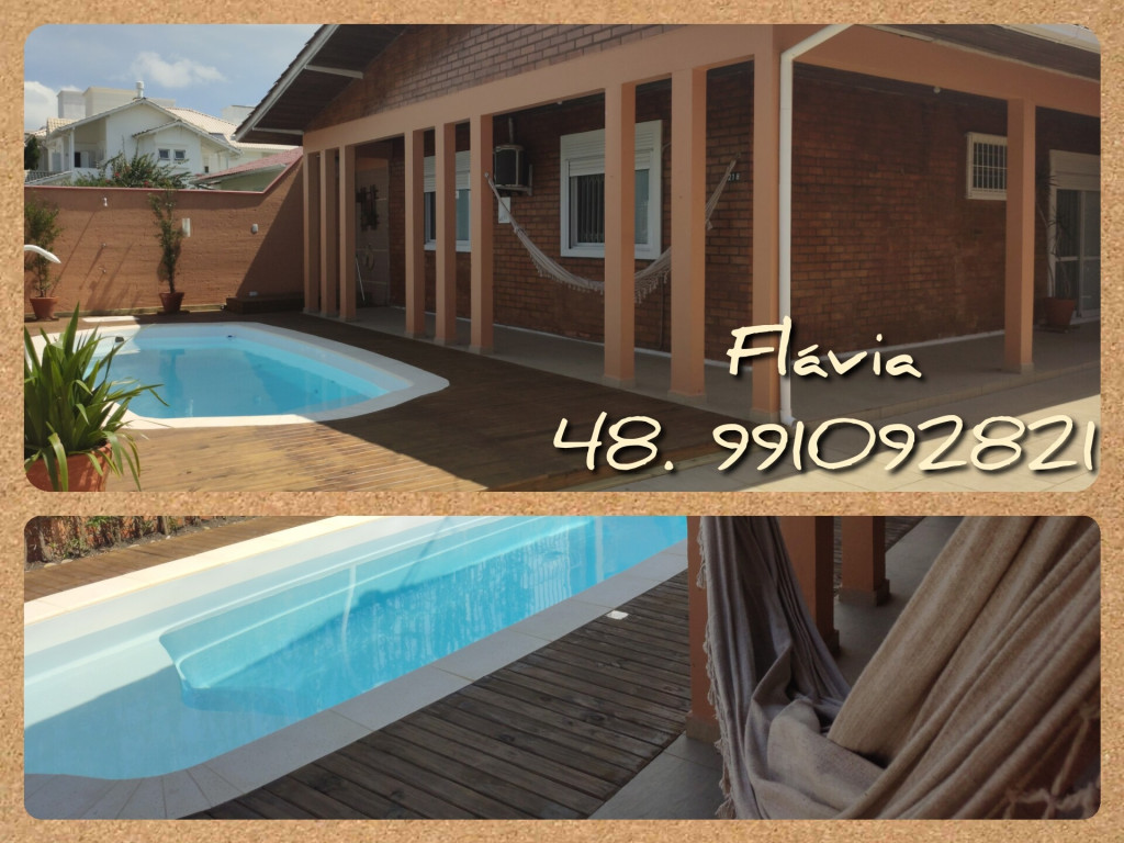 Casa em Jurerê para 10 pessoas com piscina. A casa tem 4 quartos, todos com ar condicionado, 2 suítes + 1 bwc, sala de tv , cozinha completa, churrasqueira, vaga de garagem para dois veículos. 200 metros da praia e próxima de supermercado, farmácia, mini mercado e restaurantes.