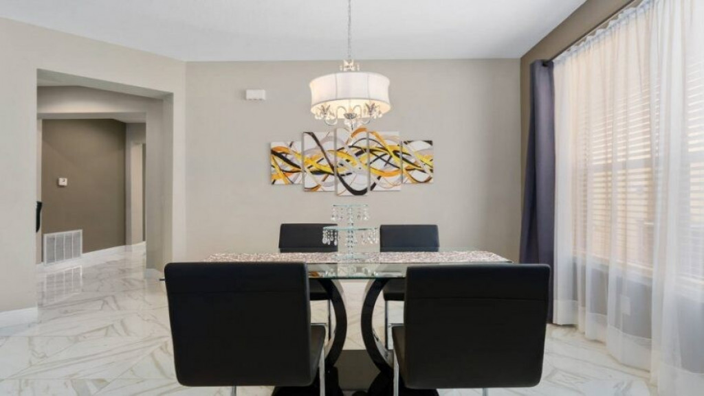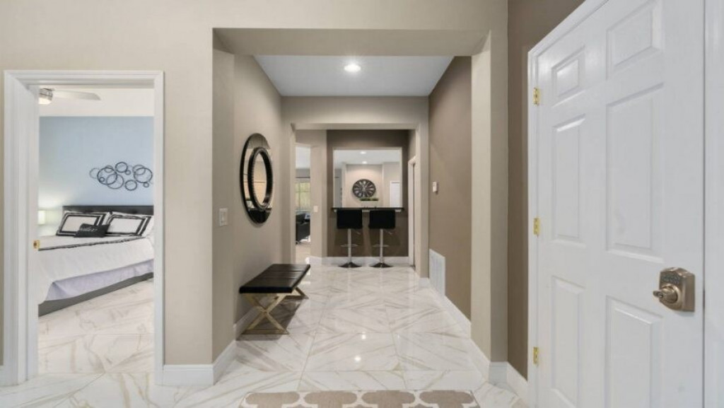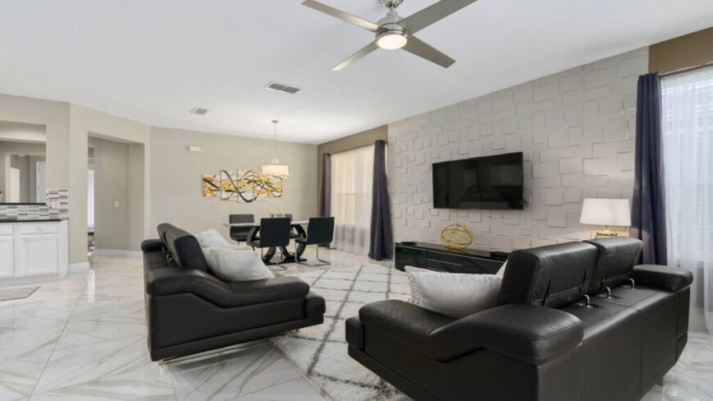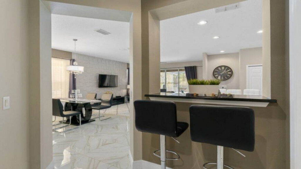 Máquina de lavar roupas e secar roupas, garagem para dois carros; sala de estar com vista para a piscina. A piscina com uma área coberta possui mesas e cadeiras para desfrutar bons momentos de lazer.
