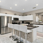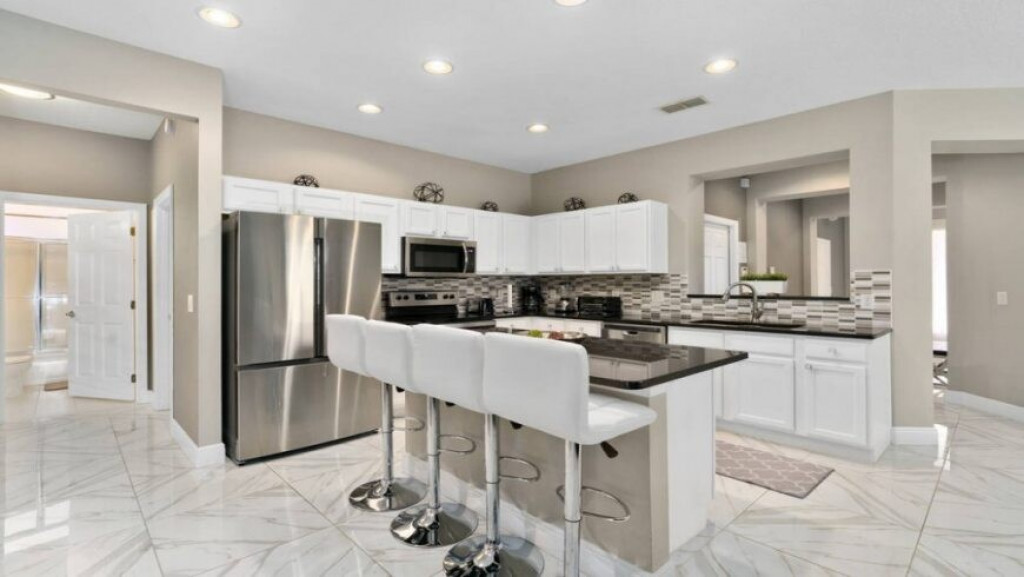 A cozinha americana, totalmente equipada com máquina de lavar pratos, micro-ondas, geladeira com freezer, fogão com forno, cafeteira, liquidificador etc, enfim todos os utensílios domésticos necessários.