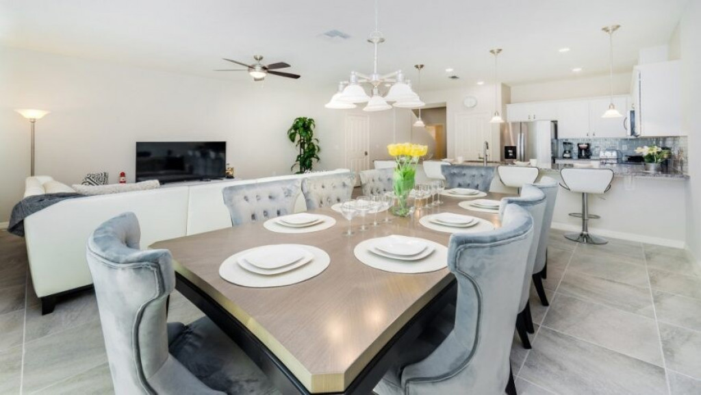 Máquina de lavar roupas e secar roupas, garagem para dois carros; sala de estar com vista para a piscina. A piscina com uma área coberta possui mesas e cadeiras para desfrutar bons momentos de lazer.