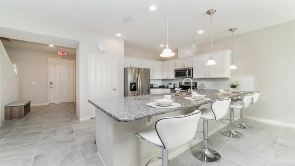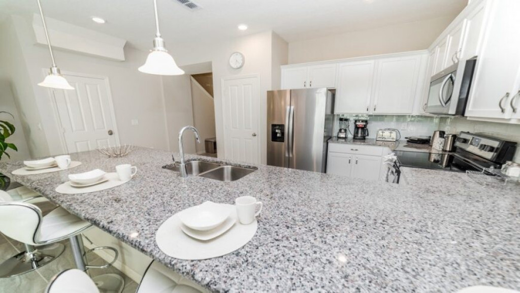 A cozinha americana, totalmente equipada com máquina de lavar pratos, micro-ondas, geladeira com freezer, fogão com forno, cafeteira, liquidificador etc, enfim todos os utensílios domésticos necessários.